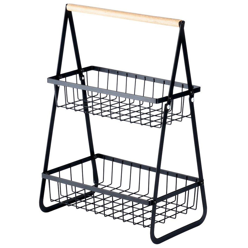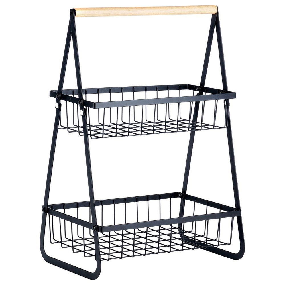 Koszyk Dwupoziomowy Piętrowy Owoce Warzywa Metalowy Czarny Patera Stojak