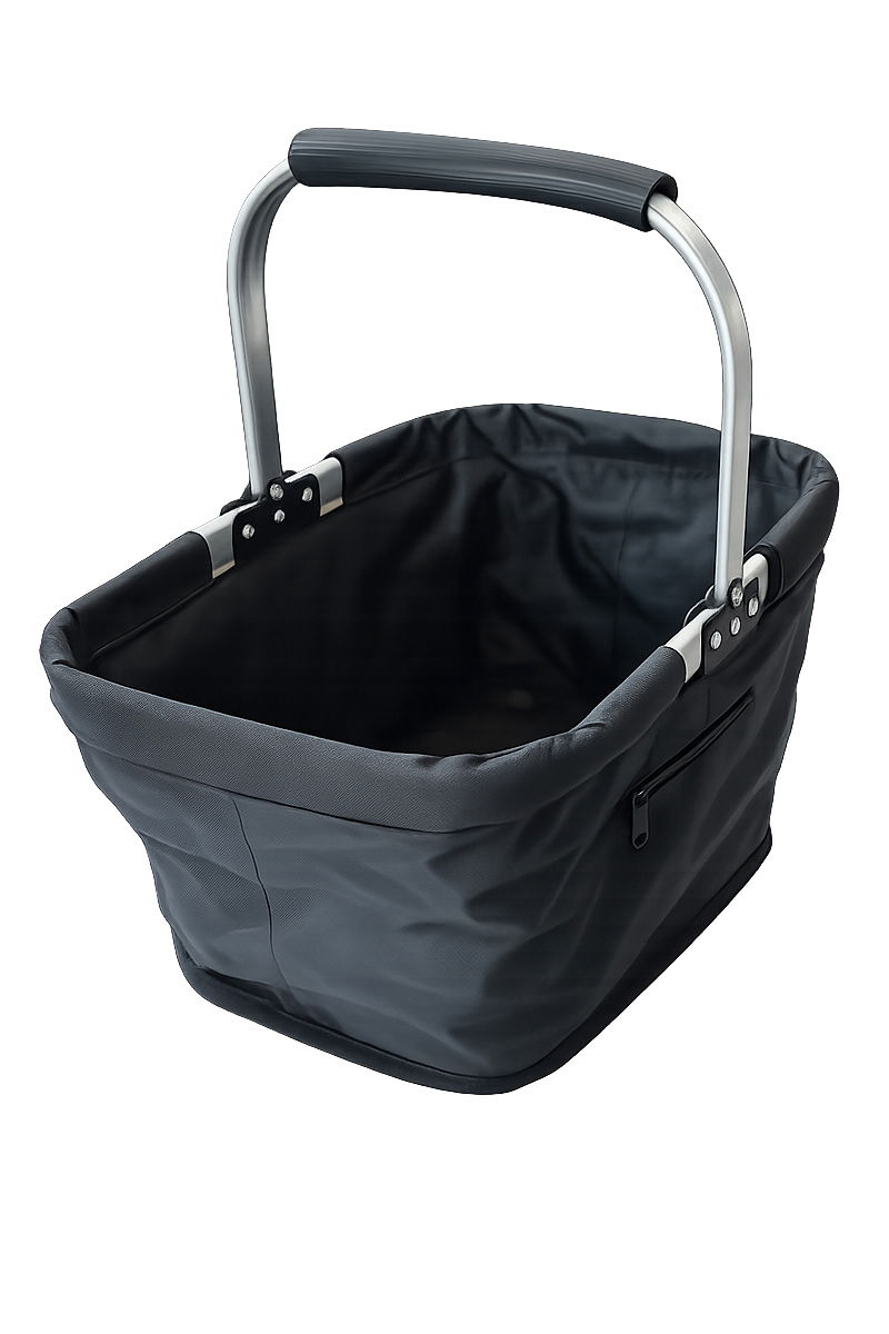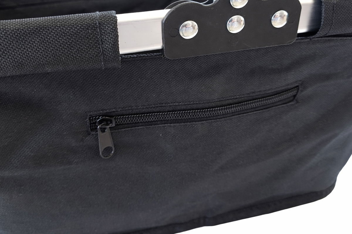 Dodatkowym atutem jest praktyczna kieszonka zapinana na zamek, która umożliwia bezpieczne przechowywanie drobnych przedmiotów – kluczy, portfela, telefonu czy listy zakupów. Po złożeniu koszyk można w prosty sposób złożyć, co ułatwia jego przechowywanie i transport.