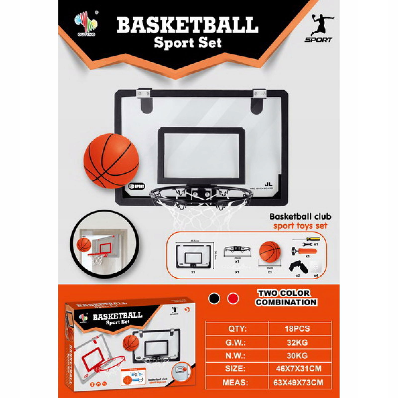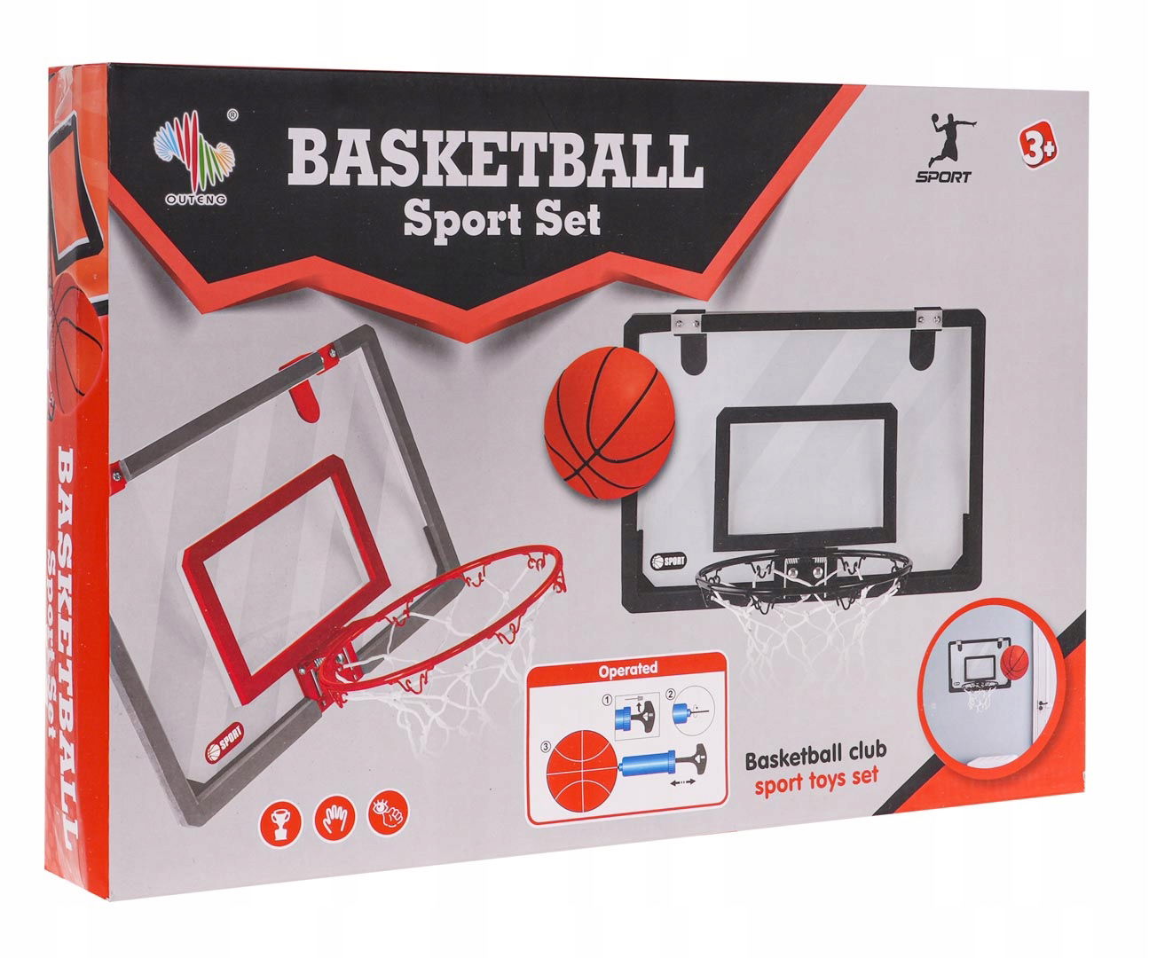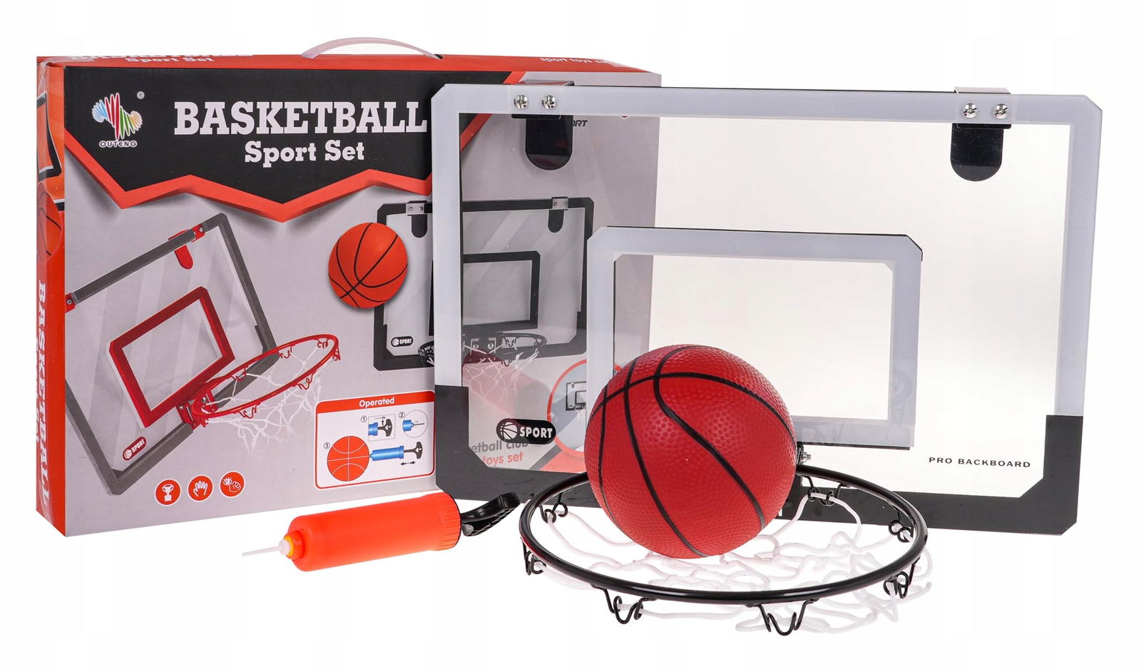 Zestaw do koszykówki dla dzieci od 3-go roku życia i dorosłych. Zestaw składa się z tablicy, obręczy do kosza, siatki, haczyków, piłki i pompki. Koszykówkę możemy zamontować na drzwiach, nie zajmuje dużo miejsca. Zestaw wykonany został ze świetnej jakości materiałów. Tablica jest odporna na stłuczenie, a obręcz metalowa, co gwarantuje długie używanie. Z tym zestawem Twoja pociecha będzie rozwijać zdolności sportowe i świetnie spędzać czas.