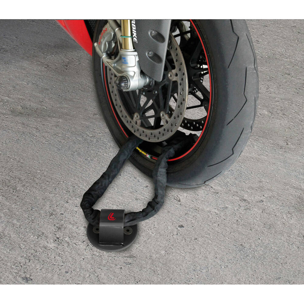 Stwórz ultra mocny i bezpieczny punkt kotwiczący dla swojego motocykla. Stal hartowana ze wzmocnionymi spawami. Wyposażony w 2 specjalne kołki rozporowe z kulkami antykradzieżowymi do mocowania do podłoża.