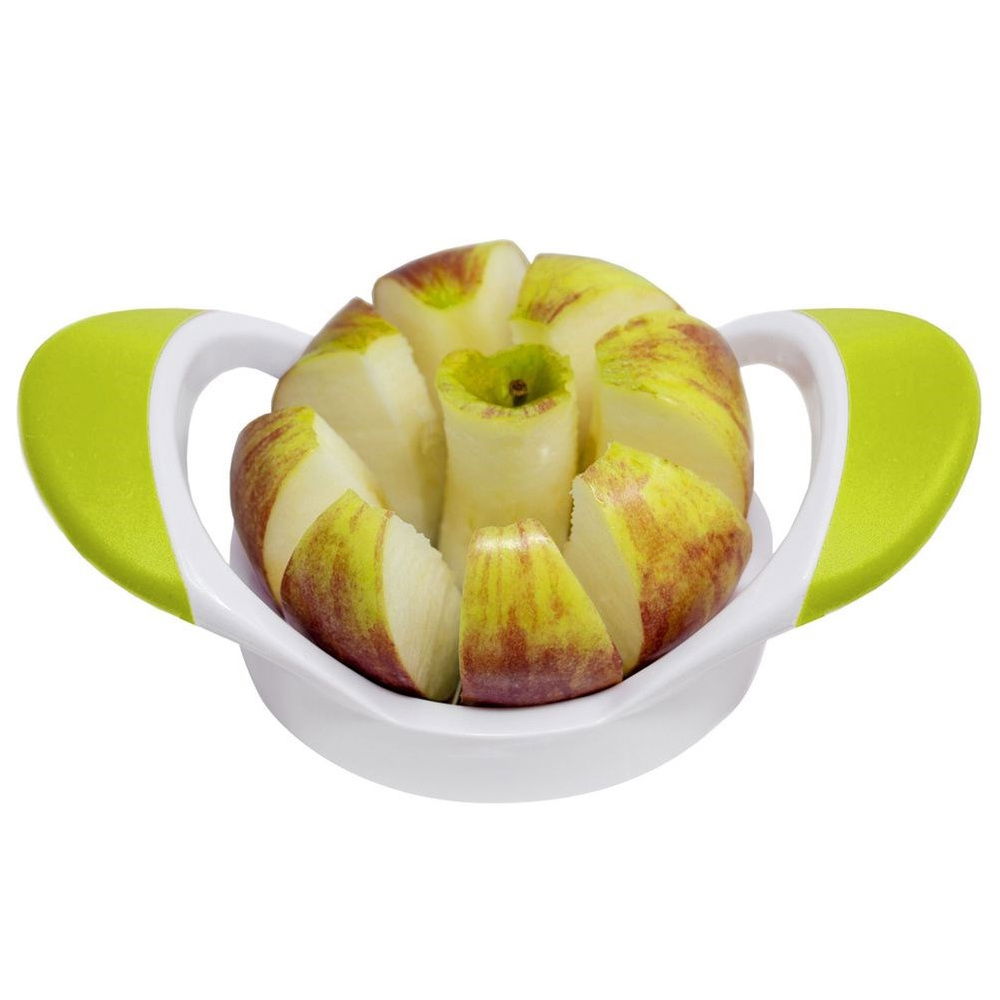 WYGODNA - Posiada dwa uchwyty, które umożliwiają pewne trzymanie jabłka podczas krojenia. Dzięki temu można bezpiecznie i łatwo przeciąć jabłko na równe plastry.