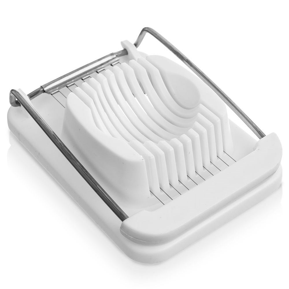 KLASYCZNA - Krajalnica do plastrowania jajek. Wykonana z najwyższej jakości tworzywa w białym kolorze, z żyłkami ze stali nierdzewnej. Wymiar krajalnicy 12,5 x 9 x 3,5 cm.