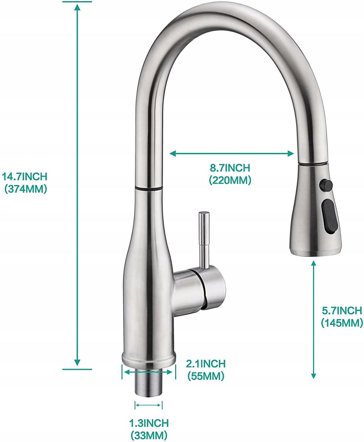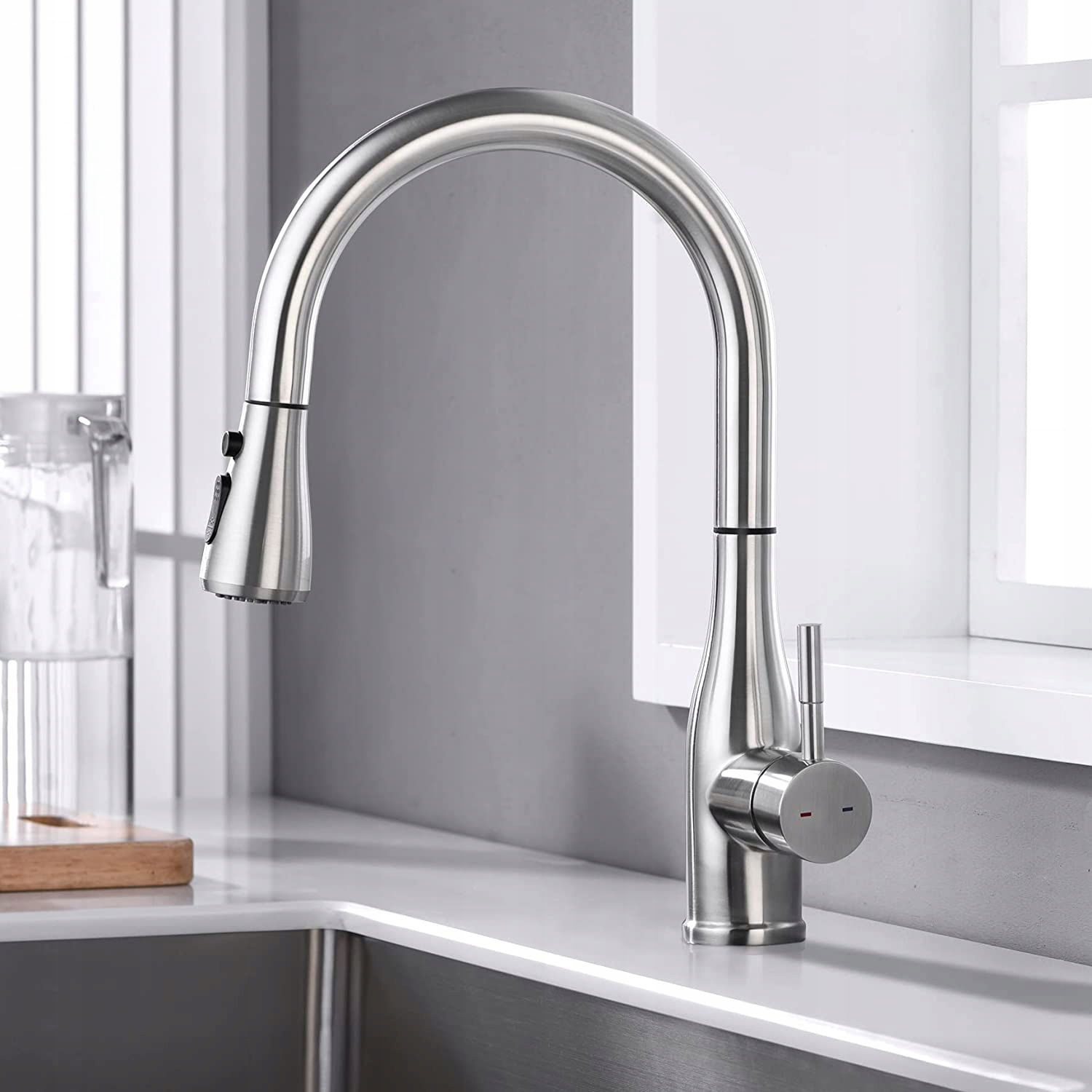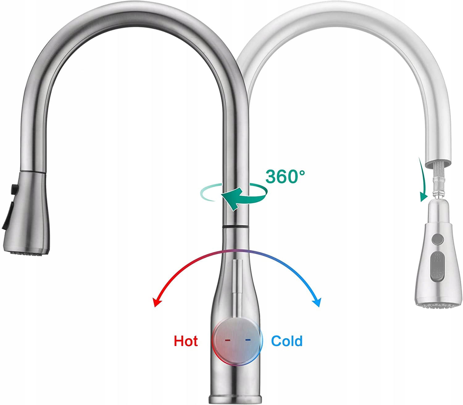 Bateria kuchenna z 24-calową wyciąganą wylewką, elastyczna wylewka może obracać się o 360 stopni, dzięki czemu można łatwo dotrzeć do wszystkich obszarów zlewu i wykonywać prace domowe z wysoką wydajnością.