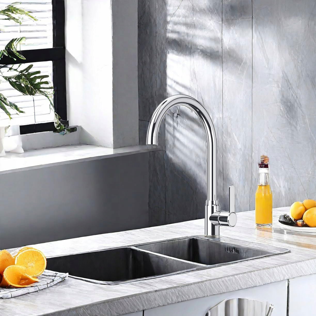 Elastyczny kran kuchenny to doskonały wybór dla tych, którzy cenią sobie wygodę. Obrót o 360° zapewnia pełną swobodę ruchu, a specjalne kliknięcie gwarantuje precyzyjne pozycjonowanie. Idealny do dużych i podwójnych zlewozmywaków.