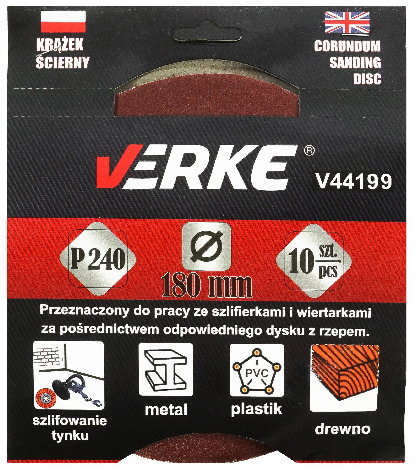 KRĄŻEK PAPIER ŚCIERNY P 240 180 MM 10 SZT. VERKE V44199