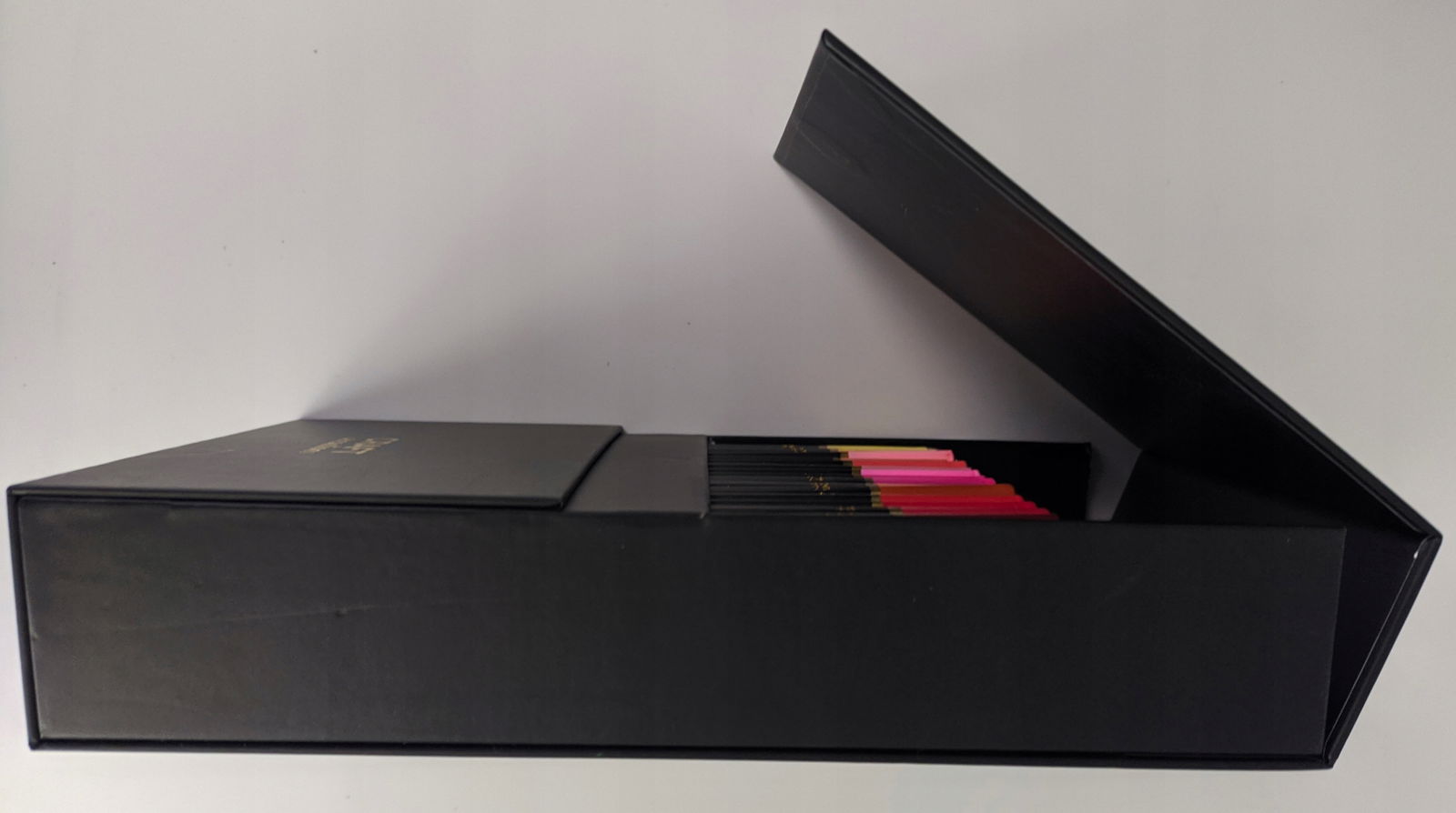 Kredki umieszczone w eleganckim, praktycznym etui, zapinanym magnetycznie