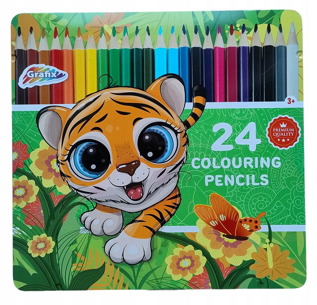 Kredki ołówkowe kolorowe 24 szt metalowy box szkolne Grafix wzór TYGRYS