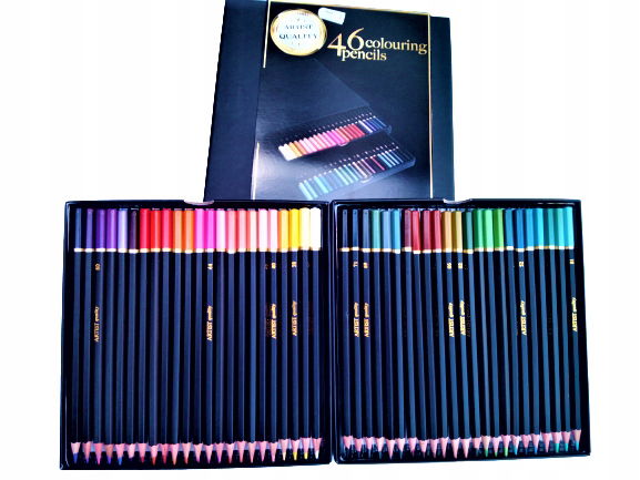 KREDKI OŁÓWKOWE PROFESJONALNY ZESTAW KREDEK 46 sztuk w PORĘCZNYM ETUI 37-82