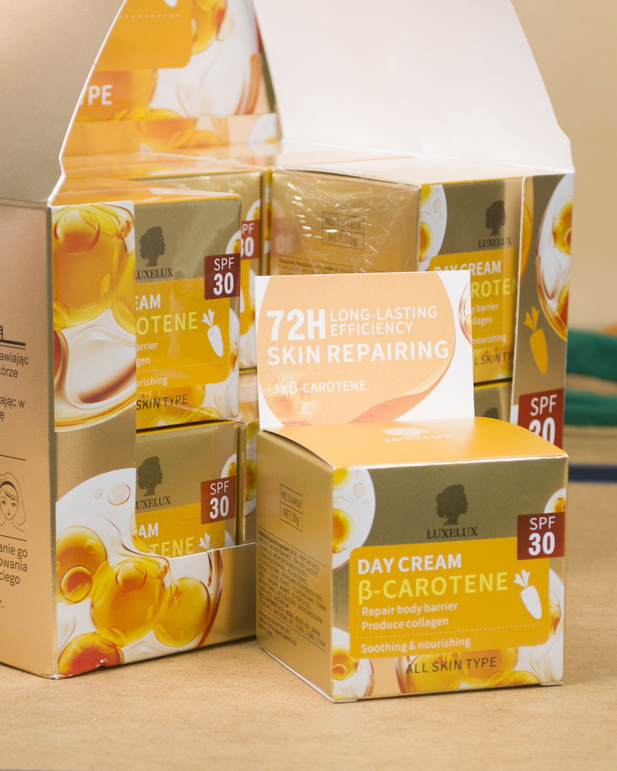Nowa seria kremów od LUXELUX. Słynne kremy stworzone w technologii koreańskiej, dostosowane do rynku europejskiego. Najwyższa jakość i gwarantowany efekt. Krem przeciwzmarszczkowy z aktywnym kolagenem, który dosłownie wypełnia i wygładza zmarszczki na Twojej twarzy. Nowe, wygodne opakowanie będzie się pięknie prezentować na Twojej półce z kosmetykami. Dodatkowo, dzięki eleganckiemu opakowaniu, krem idealnie nadaje się na niedrogi, ale efektowny prezent. Dzięki dołączonej łyżeczce łatwiej odmierzyć odpowiednią ilość kremu. Krem ma przyjemny zapach, gęstą konsystencję, szybko się wchłania i nie pozostawia tłustych śladów. Jeśli szukasz dobrej, niedrogiej kosmetyki, produkty od Luxelux będą doskonałym wyborem. Polecam!