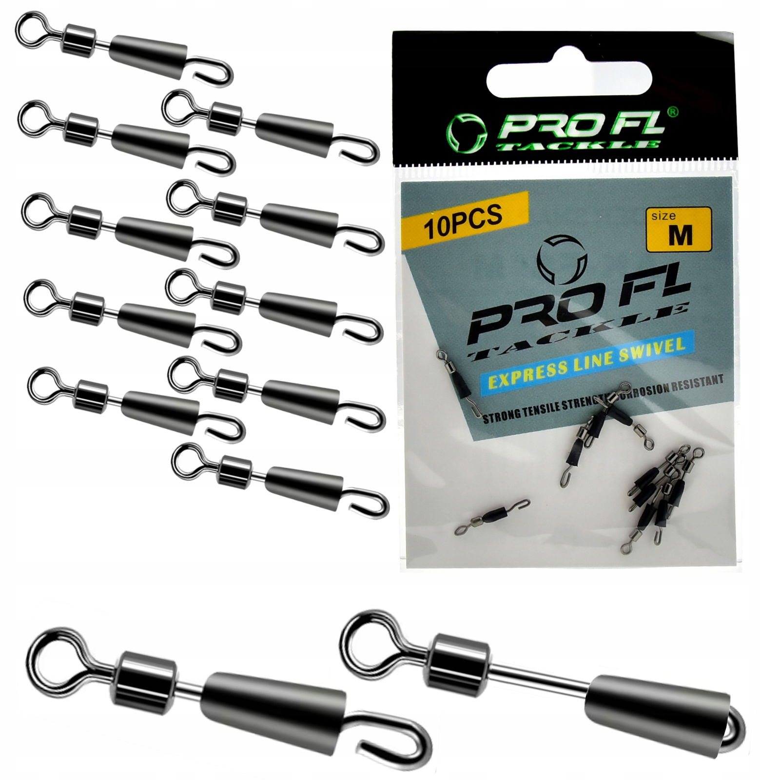 Zestaw 10 krętlików szybkiej wymiany Pro FL w rozmiarze M (14 mm). Niezastąpione przy tworzeniu zestawów końcowych, szczególnie przy połowie karpi i metodzie PVA. Umożliwiają błyskawiczną wymianę przyponu bez wiązania węzłów.