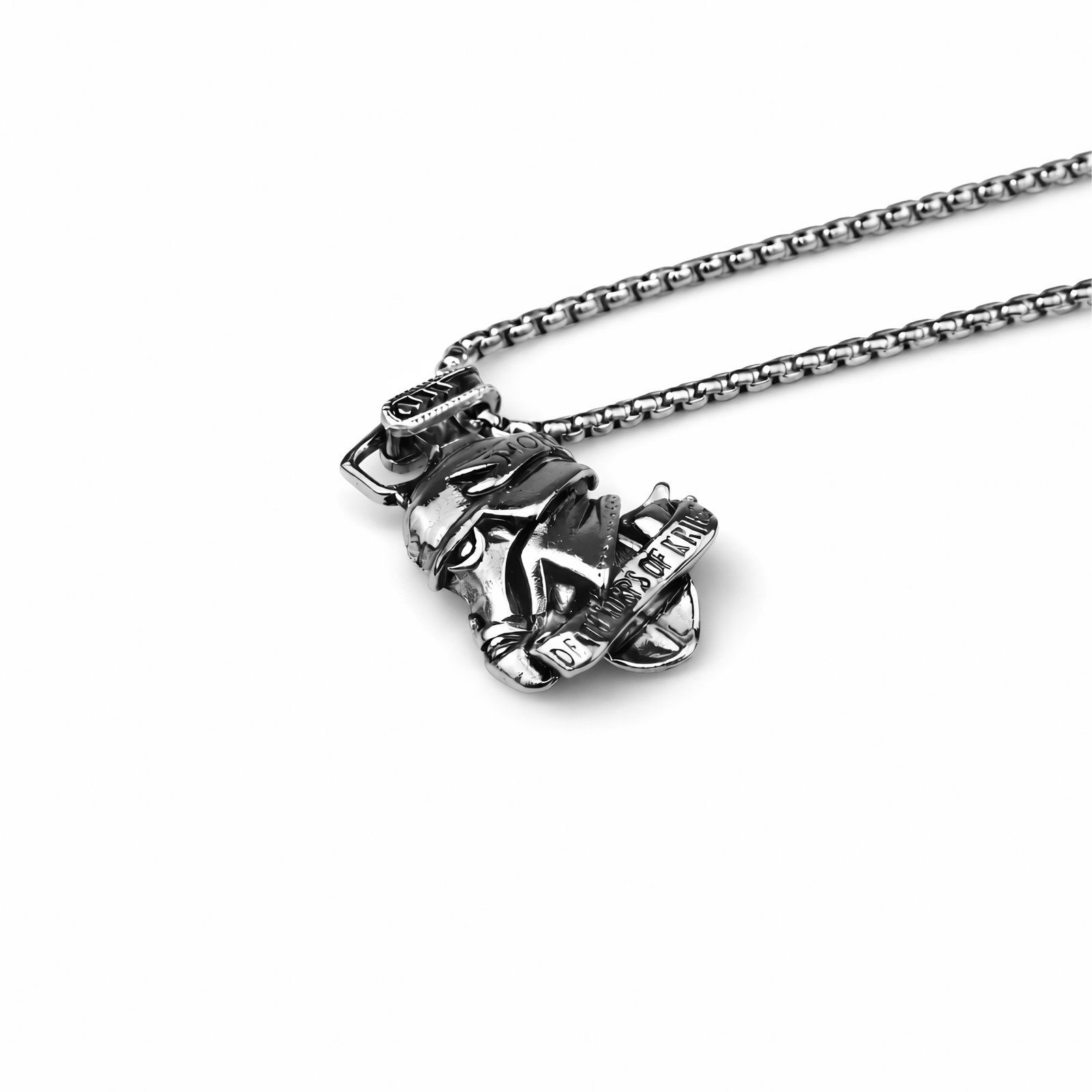 Ta starannie wykonana metalowa zawieszka ożywia mroczną i ponurą rzeczywistość żołnierzy Krieg z Warhammera 40k. Mierząca 5 cm wysokości, przedstawia szczegółowo wyrzeźbiony hełm żołnierza Krieg, z autentycznymi oznaczeniami rozdziału i teksturowaną płytą pancerną. Polerowane stalowe wykończenie oddaje surowy, naznaczony bitwami wygląd sił Krieg, a misternie zaprojektowane kółko do zawieszania zapewnia bezpieczne noszenie. Każda linia i detal oddają hołd historii 41. tysiąclecia, czyniąc ją niezbędnym elementem dla fanów, którzy cenią zarówno styl, jak i autentyczność w swoich kolekcjonerskich przedmiotach z Warhammera 40k.