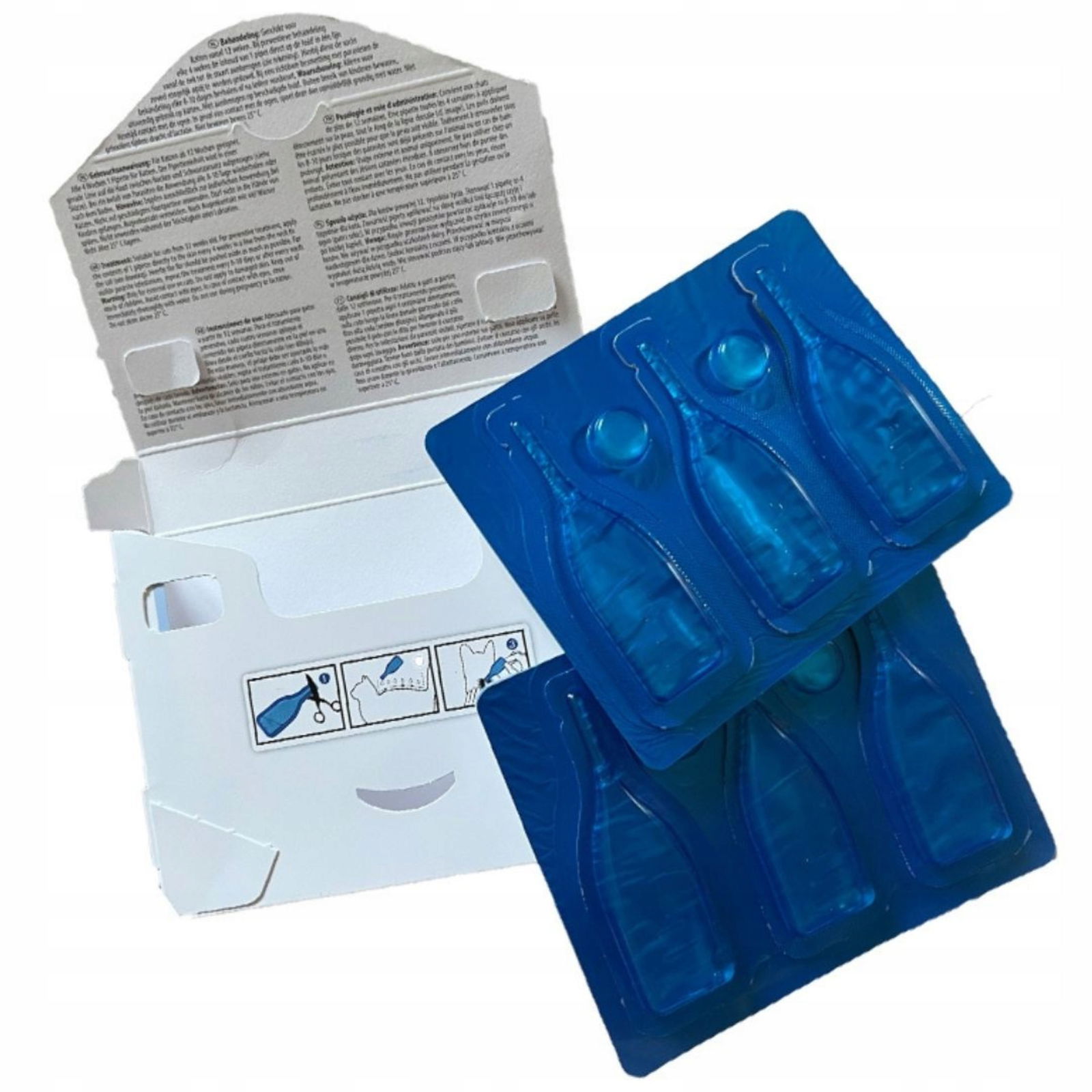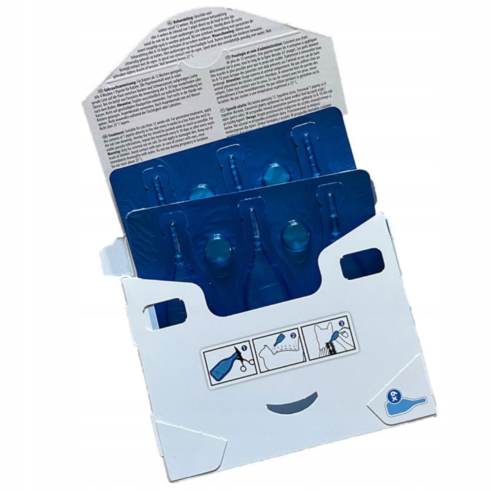 Dla kotów powyżej 12. tygodnia życia. Stosować 1 pipetę co 4 tygodnie dla kota. Zawartość pipety aplikować na skórę wzdłuż linii łączącej szyję i ogon (patrz szkic). W przypadku inwazji pasożytów powtarzać aplikację co 8-10 dni lub po każdej kąpieli.