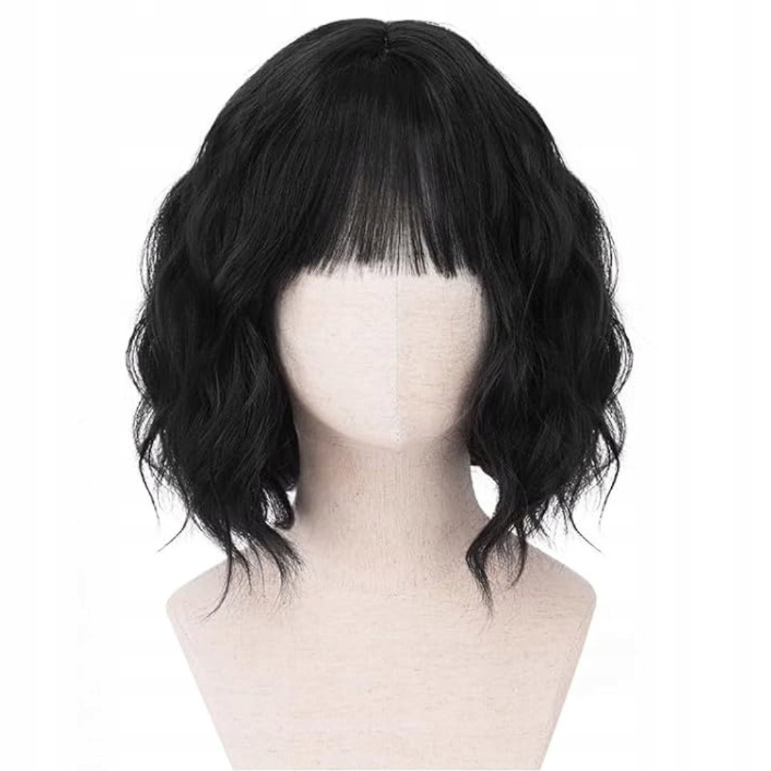 Sofeiyan krótka falowana peruka bob z grzywką, 30 cm, czarna to syntetyczna peruka o naturalnie wyglądających lokach, przeznaczona do szybkiej i efektownej zmiany fryzury bez ingerencji w naturalne włosy.