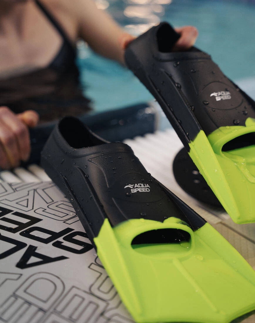 Płetwy treningowe doskonale nadają się do trenowania techniki pływania i wytrzymałości. Dzięki swej konstrukcji pozwalają na ruch nóg bardzo zbliżony to tego, który pływak wykonuje bez płetw. Specjalne wzmocnienia znajdujące się po bokach płetw i zaczynające się już przy kaloszach, poza gwarantowaniem wysokiej wytrzymałości płetw, kierują wodę wzdłuż piór podczas płynięcia i redukują wibracje powodowane przez zawirowania wody. Płetwy treningowe Aquaspeed zwiększają efektywność ruchów nóg dając większą siłę napędową, ale jednocześnie zwiększając wysiłek fizyczny i pozwalając zwiększać siłę i wytrzymałość mięśni nóg.