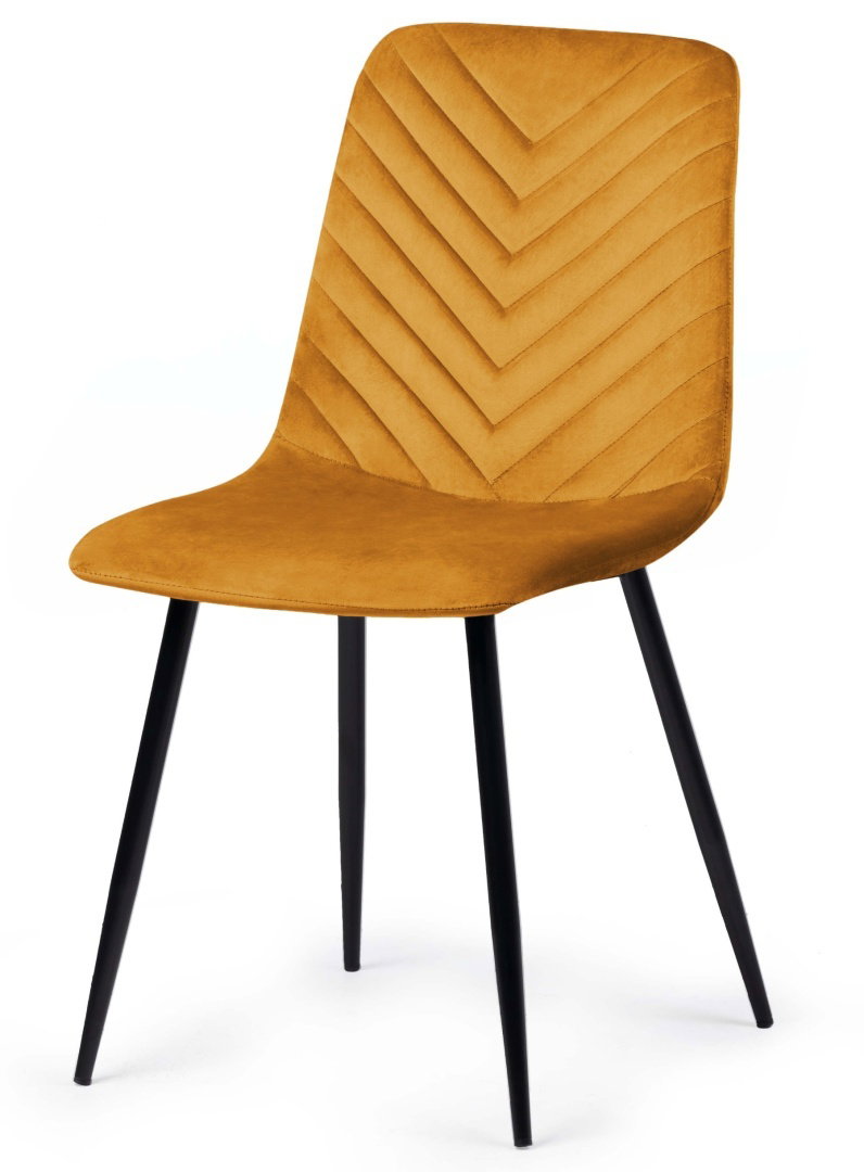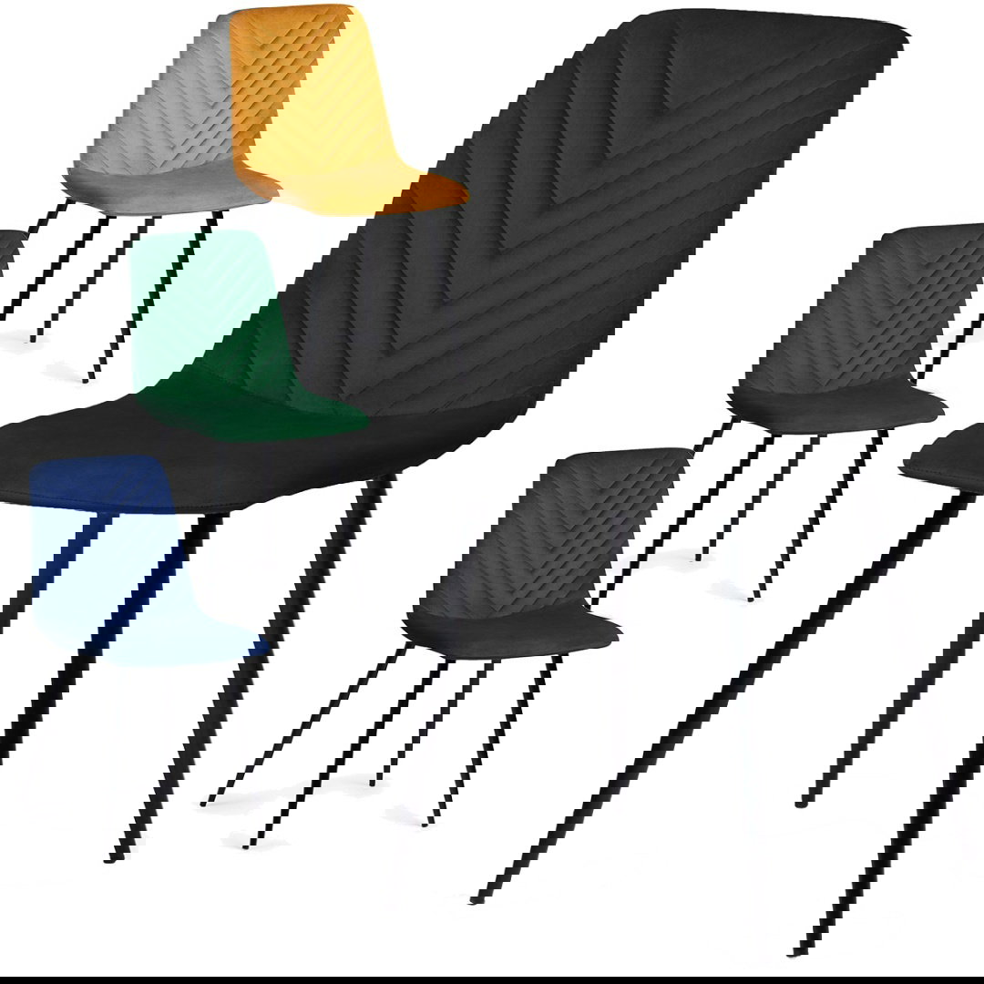 Nowoczesne krzesła tapicerowane welurem z przeszyciami w romby.