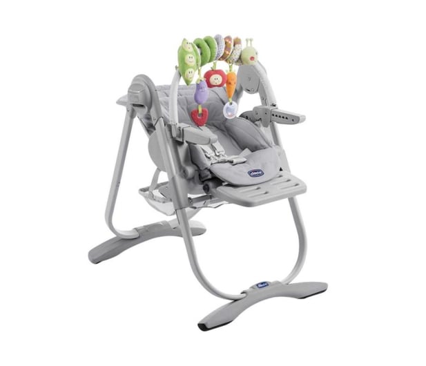 Krzesło Polly Magic zostało wyposażone w pałąk z zabawkami, który pobudzi zmysły dziecka. Praktyczny duży kosz pomoże uporządkować wszystkie niezbędne do karmienia drobiazgi.