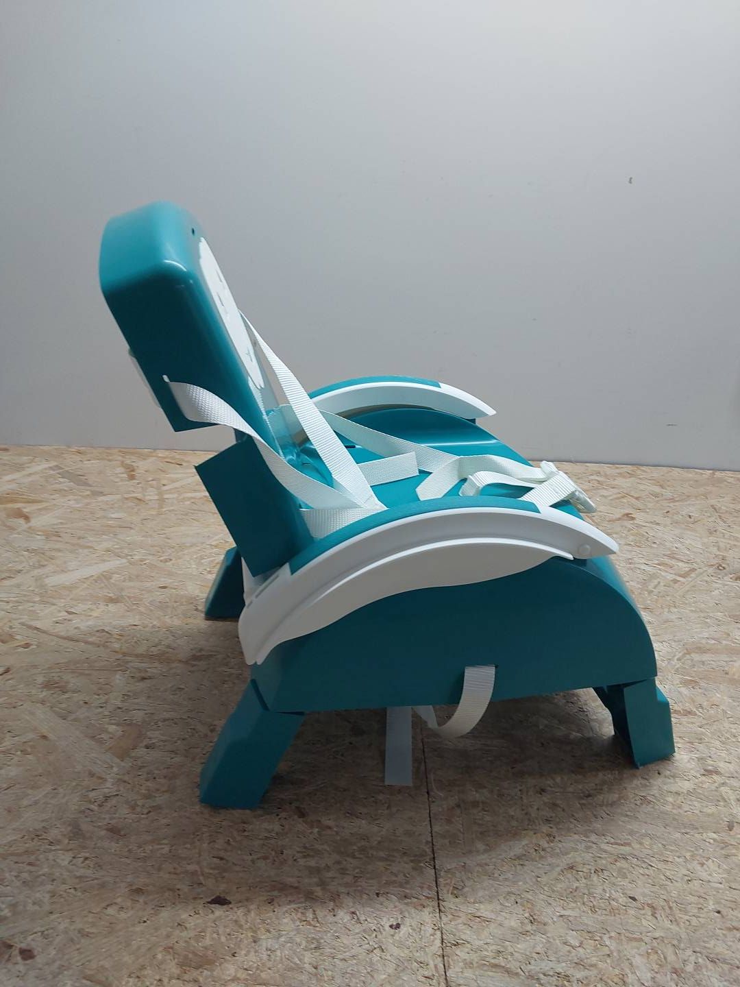 Dzięki składanym nóżką możemy uzyskać dwie wysokości w zależności od wzrostu malucha, i tego do czego używamy krzesełka. Produkt łatwo się składa, dzięki temu można zabrać je na wakacje.