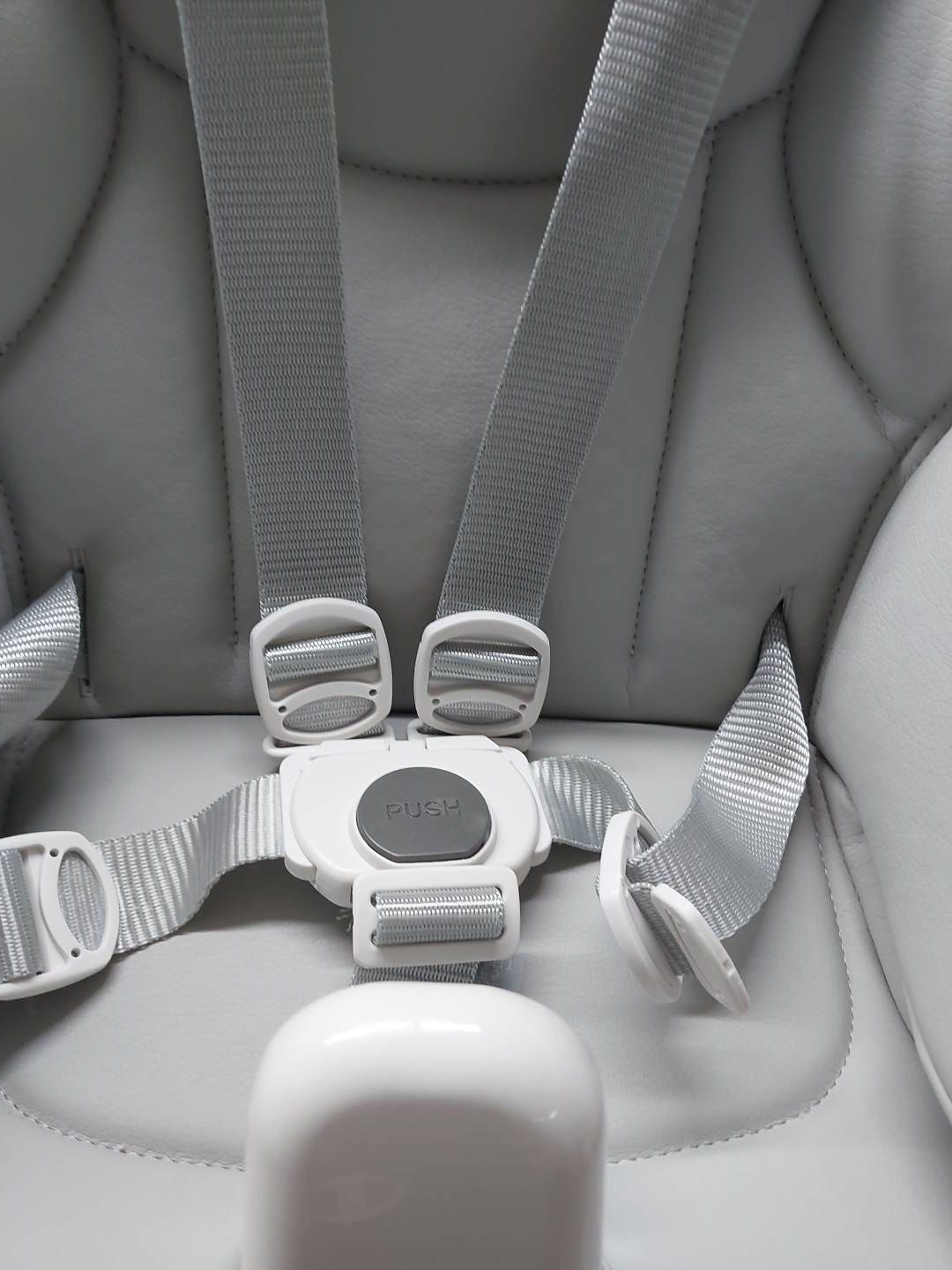 Jednak ten model, oprócz funkcji leżaczka, został dodatkowo wzbogacony w cztery kołeczka z możliwością blokady oraz dodatkowy element zabezpieczający znajdujący się pod wypinaną tacką, który uniemożliwia dziecku skrzyżowanie nóżek oraz wyślizgnięcie się dziecka po którejś ze stron krzesełka.
