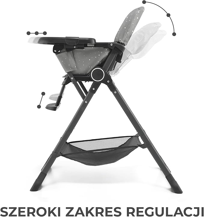 Ma 3 pozycje oparcia i 2 pozycje podnóżka, dzięki czemu maluchowi będzie nie tylko wygodnie, ale także pozwoli mu przybrać prawidłową postawę podczas jedzenia.
