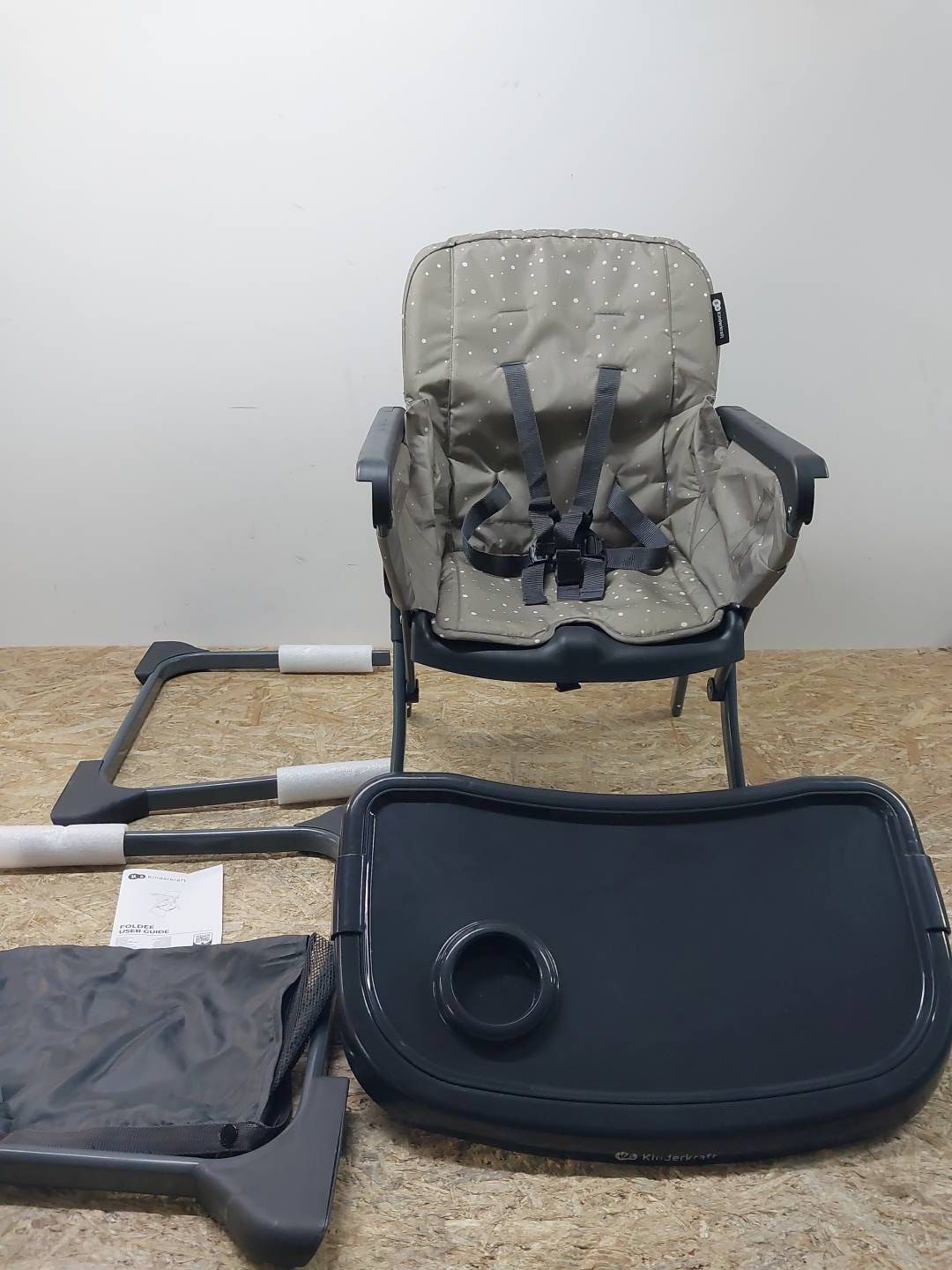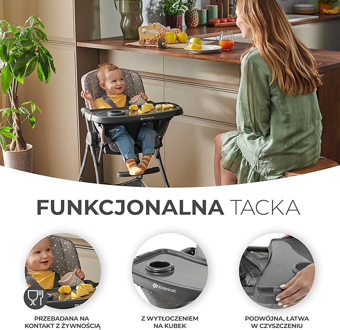 KRZESEŁKO DO KARMIENIA SKŁADANE KINDERKRAFT FOLDEE SZARY REGULOWANE