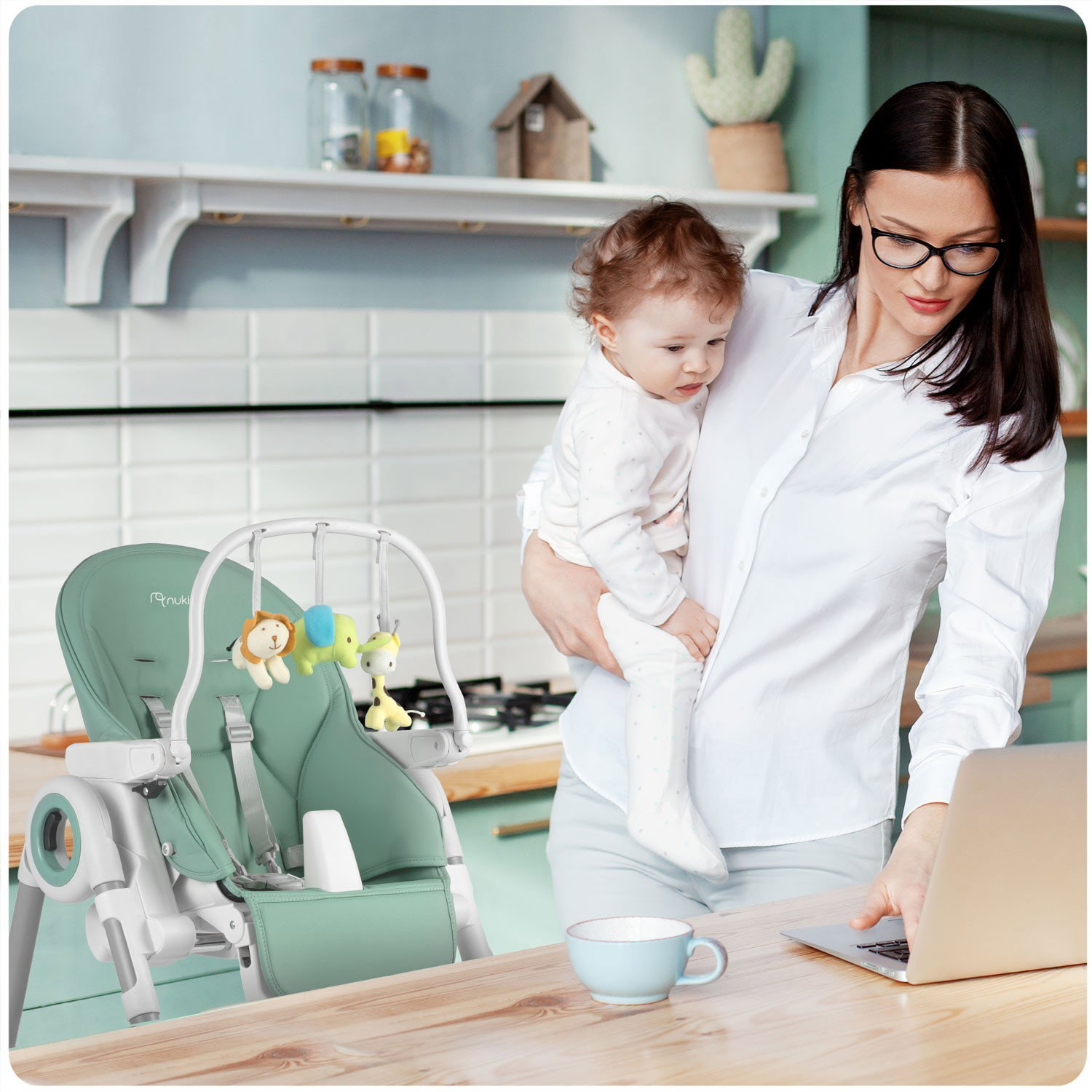 Archiwum Krzesełko do karmienia ze stolikiem, leżaczek Belo zielone + pałąk z zabawkami