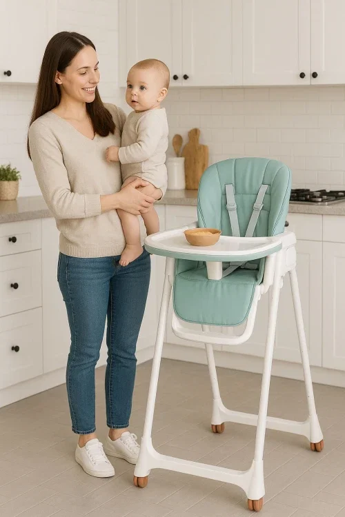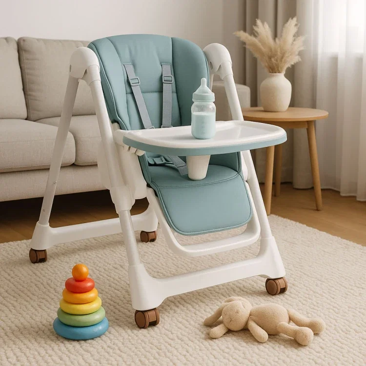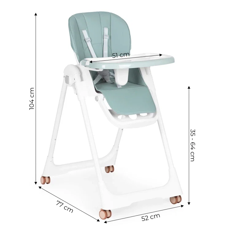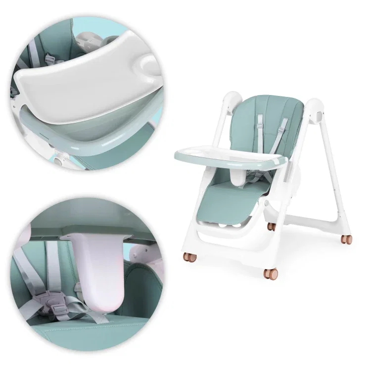 KRZESEŁKO FOTELIK DO KARMIENIA REGULACJA WYSOKOŚĆI SKŁADANE PODWÓJNA TACKA