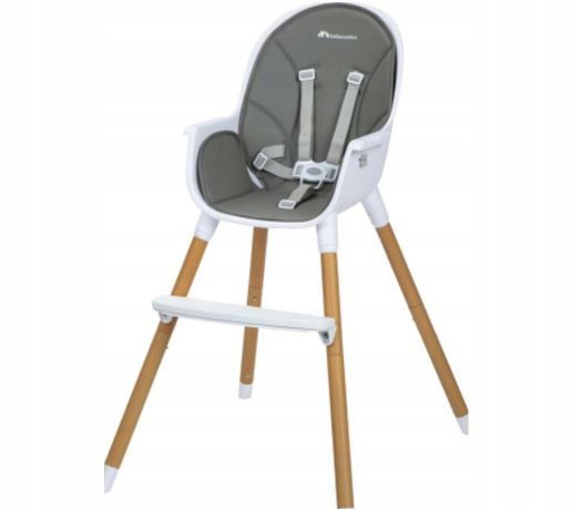 Model ten to produkt 2 w 1, który będzie służył Twojemu dziecku do spożywania posiłków od 6. miesiąca życia aż do ukończenia 6 lat lub osiągnięcia wagi 30 kg. Prosty, minimalistyczny design z łatwością dopasuje się do każdej kuchni lub pokoiku dziecięcego. Drewniane nóżki i bardzo stabilna konstrukcja gwarantują bezpieczeństwo, podobnie jak 5-punktowe, regulowane pasy bezpieczeństwa. Siedzisko krzesełka jest miękko wyściełane dla większego komfortu, a jego tapicerkę łatwo wyczyścić. Wysokie krzesło możesz z łatwością rozmontować, aby powstała jego niska wersja, na której może samodzielnie siedzieć starszak.