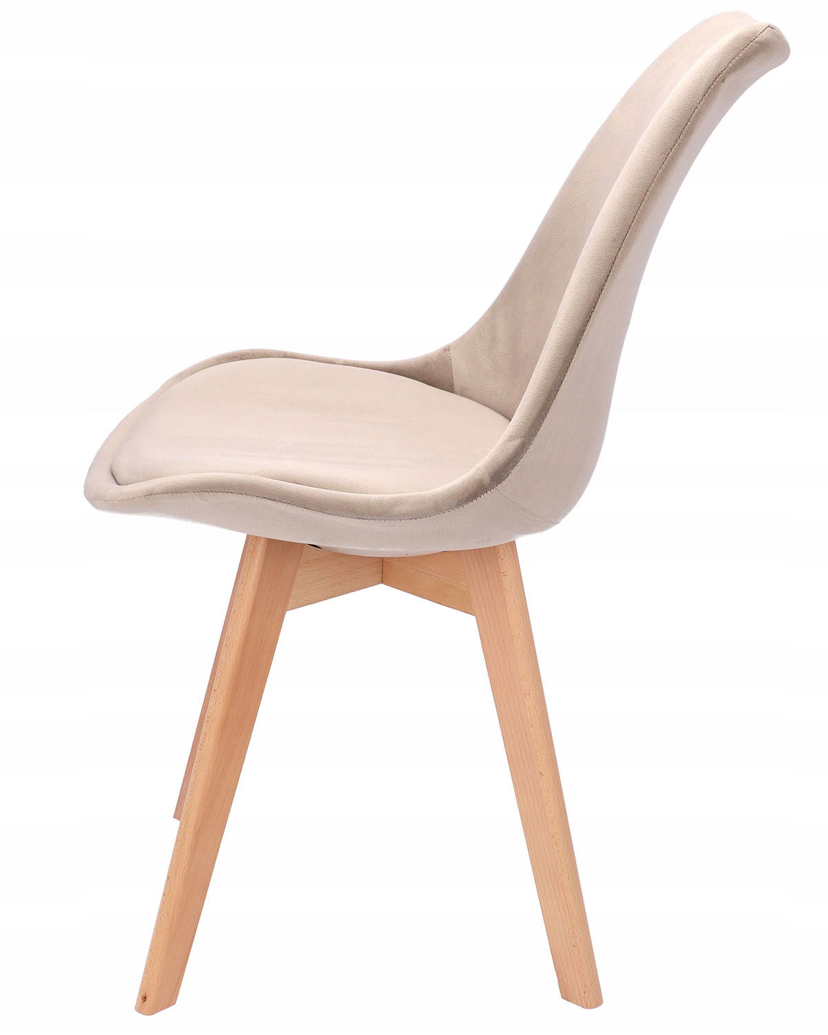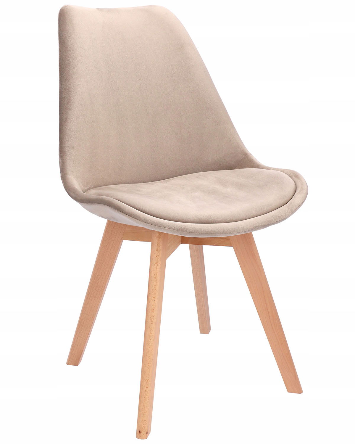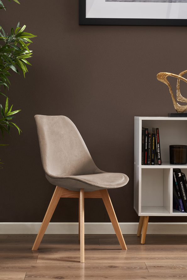 Posiada idealnie wyprofilowane oparcie pokryte welurem, które w połączeniu z miękką poduszką umieszczoną na siedzisku zapewnia dużą wygodę. Drewniane nogi wykonane z buku o jego jasnym odcieniu zapewnianą stabilność oraz wytrzymałość. Krzesło jest bardzo praktyczne i funkcjonalne.