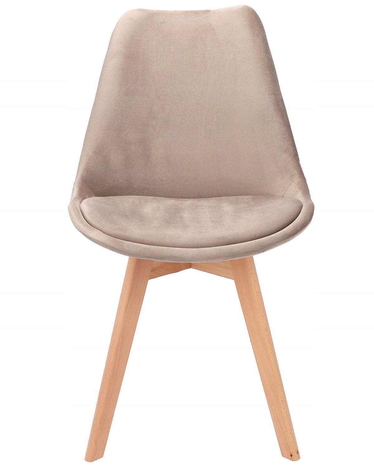 Specyfikacja: Siedzisko: welur Nogi: drewno bukowe Maksymalne obciążenie: 130 kg Wymiary: Wysokość całkowita: 82 cm Szerokość całkowita: 49 cm Głębokość całkowita: 60 cm Wysokość siedziska: 42 cm Szerokość siedziska: 49 cm Głębokość siedziska: 41 cm