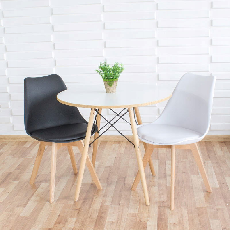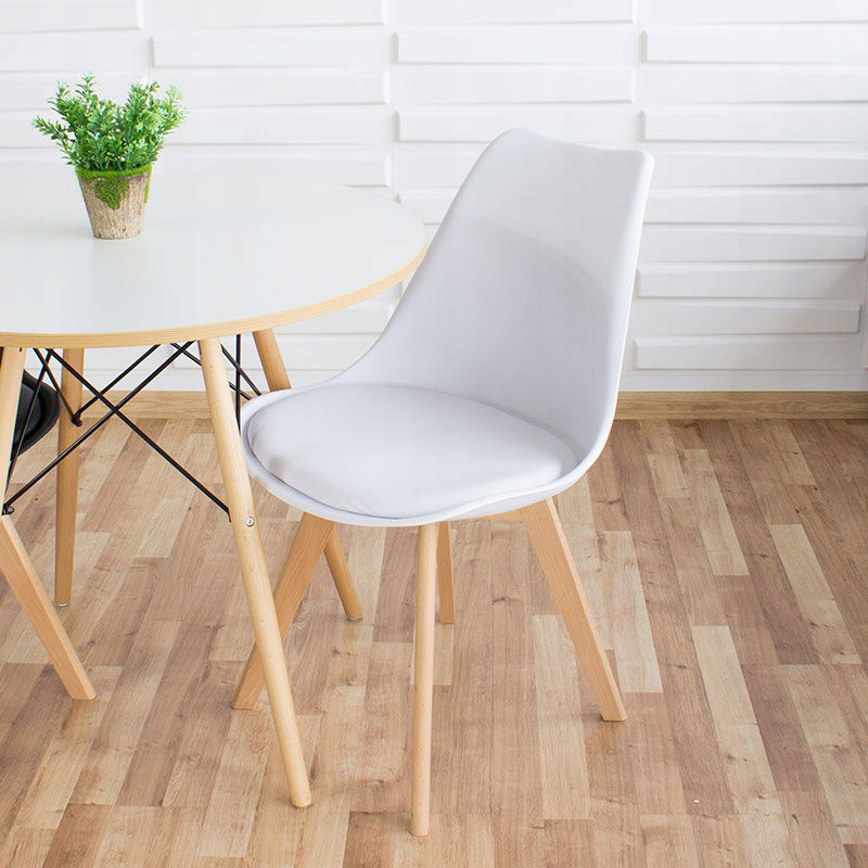 Krzesło inspirowane o oryginalnym kształcie, nawiązującym do kwiatu tulipana. Daje bardzo dużą wygodę użytkowania. Krzesło wykonane z polipropylenu z poduszką z ekoskóry - wytrzymałej na zabrudzenia i uszkodzenia mechaniczne. Swoją ciekawą formą krzesło nada odpowiedni wygląd każdemu pomieszczeniu. Nogi wykonane z drewna bukowego. Ulepszy i unowocześni również obiekty publiczne, takie jak biura, poczekalnie, restauracje, sale konferencyjne oraz kawiarnie.