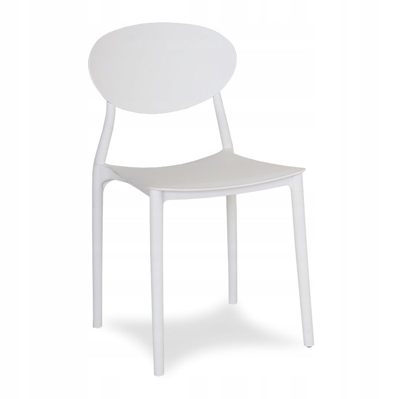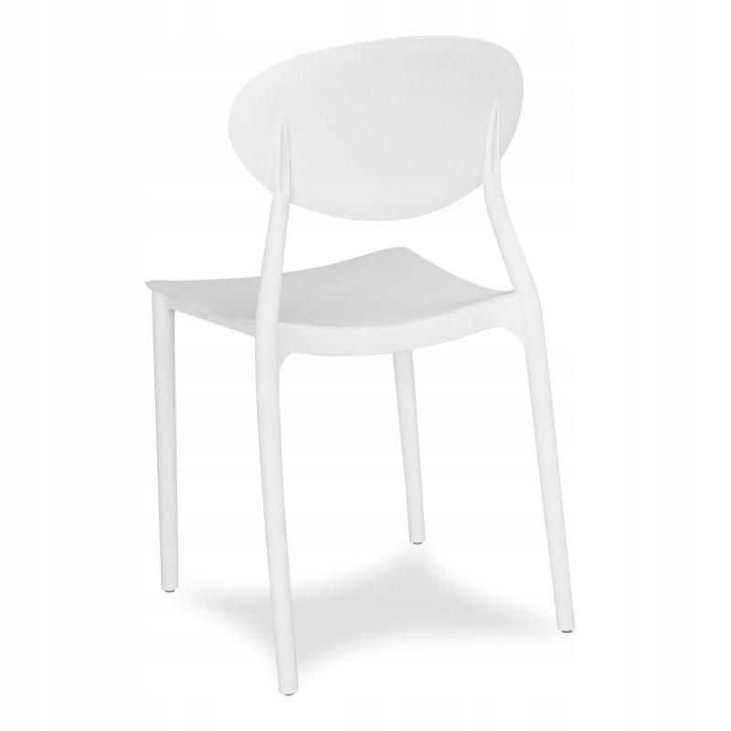 Białe plastikowe krzesło idealne do kuchni, salonu czy jadalni.
