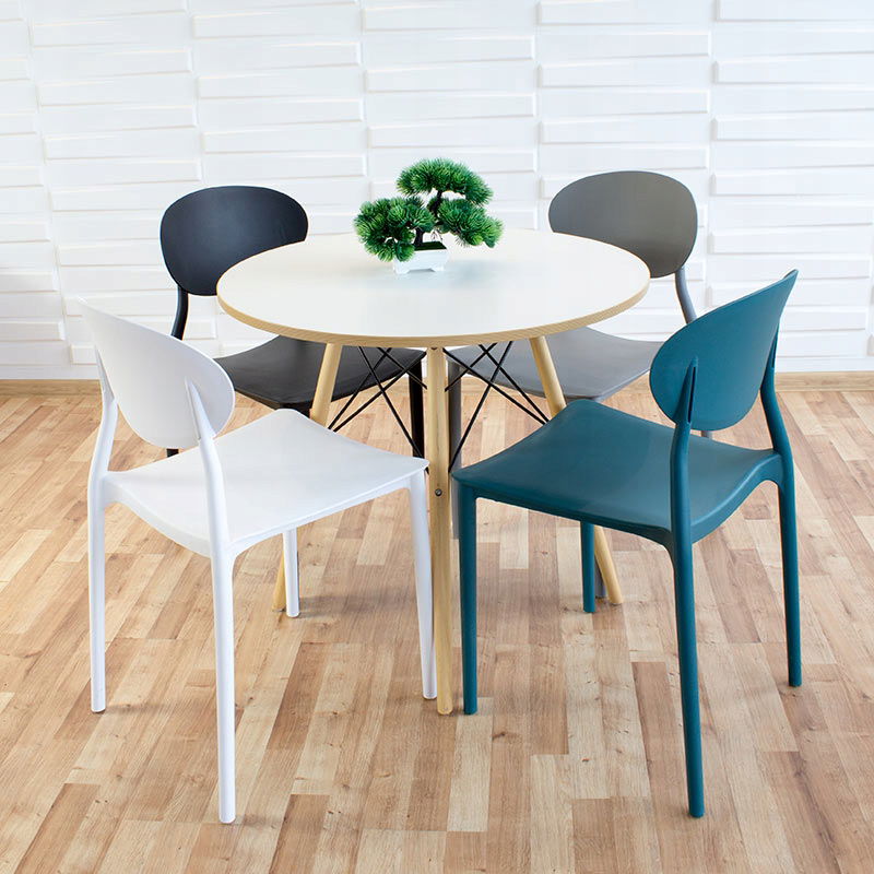 Krzesło w całości wykonane z polipropylenu o matowym wykończeniu. Idealnie wpisuje się w nowoczesny styl oraz minimalizm. Prosta forma i uniwersalizm sprawia, że krzesło można aranżować na zewnątrz i wewnątrz pomieszczeń.