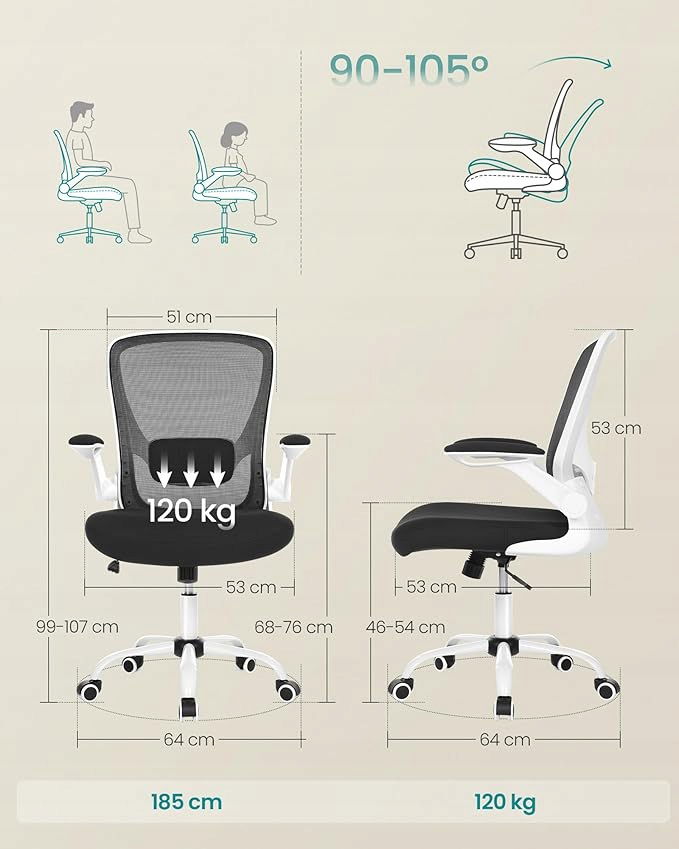 - Składane podłokietniki; wsuń krzesło do komputera pod biurko, aby zaoszczędzić miejsce