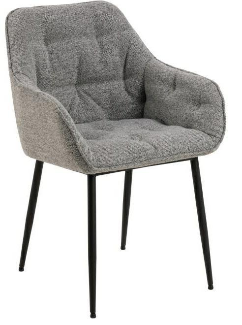 Podkreśl charakter swojej jadalni za pomocą tego szarego krzesła do jadalni. Dominującym elementem tego projektu jest czysta sylwetka. Siedzisko tapicerowane tkaniną bouclé jest przyjemne zarówno do siedzenia, jak i do oglądania. Poprzez dodanie pikowanych detali, krzesło zyskuje fakturę. Aby dopełnić eleganckiego wyglądu, krzesło stoi na smukłych, ale mocnych czarnych metalowych nogac