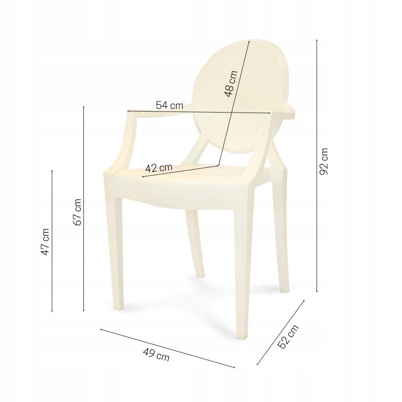 Krzesło inspirowane projektem LOUIS GHOST o nowoczesnym, ponadczasowym wzornictwie. Jego przezroczystość podkreśla nowoczesny oraz ponadczasowy design. Pośród wielu wyróżnia się stabilną, sztywną konstrukcją. Dzięki swoim cechom wzmaga przestronność pomieszczenia jak i dopasowuje się do każdej koncepcji wystroju wnętrza. Dzięki swojej prostocie oraz oryginalności pasuje do kuchni, salonu i jadalni ale także unowocześni wnętrza kawiarni, restauracji. Znakomicie wygląda również w ogrodzie i na tarasie.