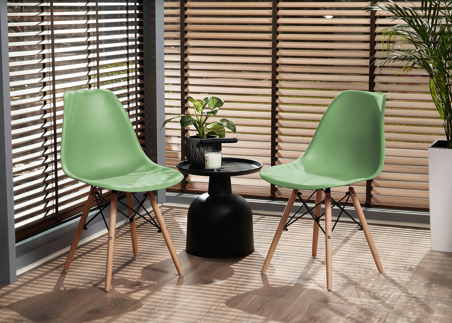 ➡️ Siedzisko to idealnie wyprofilowany polipropylen, a nogi wykonane zostały z naturalnego, litego drewna bukowego - zapewniają wytrzymałość i stabilność podczas używania, dodatkowo czarne łączenia wzmacniają całą ramę i są jednocześnie dekoracją.