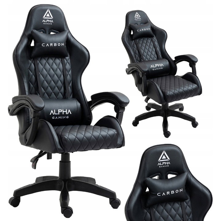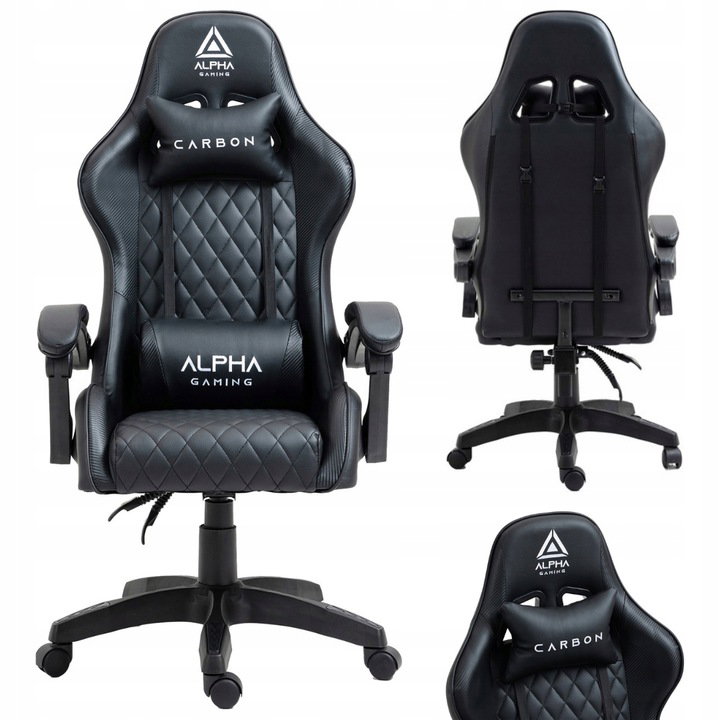 - Wstawki z carbonu: W kolorze czarnym, dodające fotelowi sportowego charakteru.