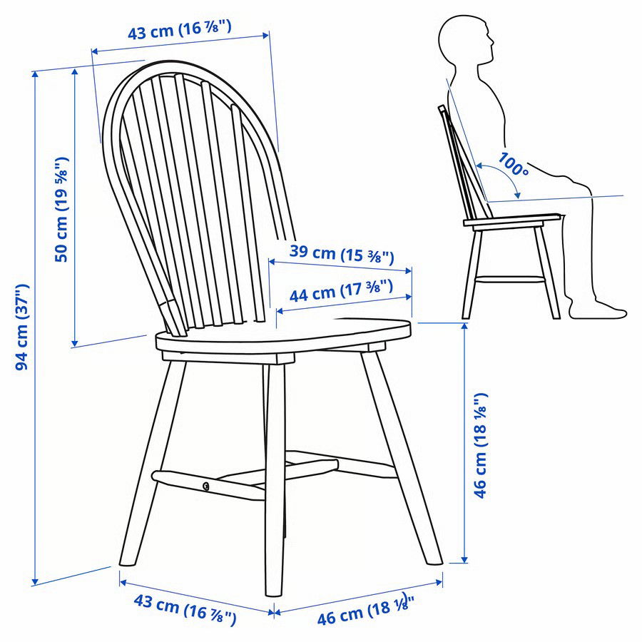 - Szerokość siedziska: 44 cm, Głębokość siedziska: 39 cm, Wysokość siedziska: 46 cm