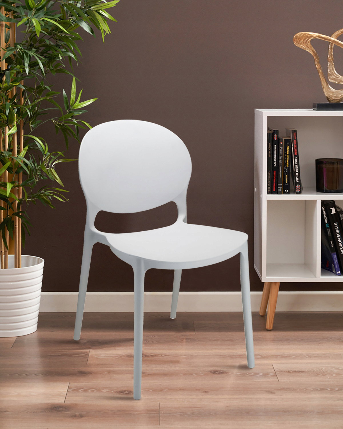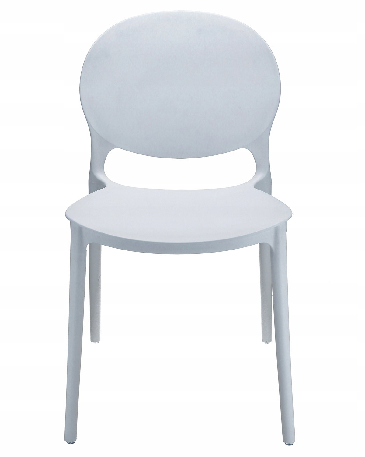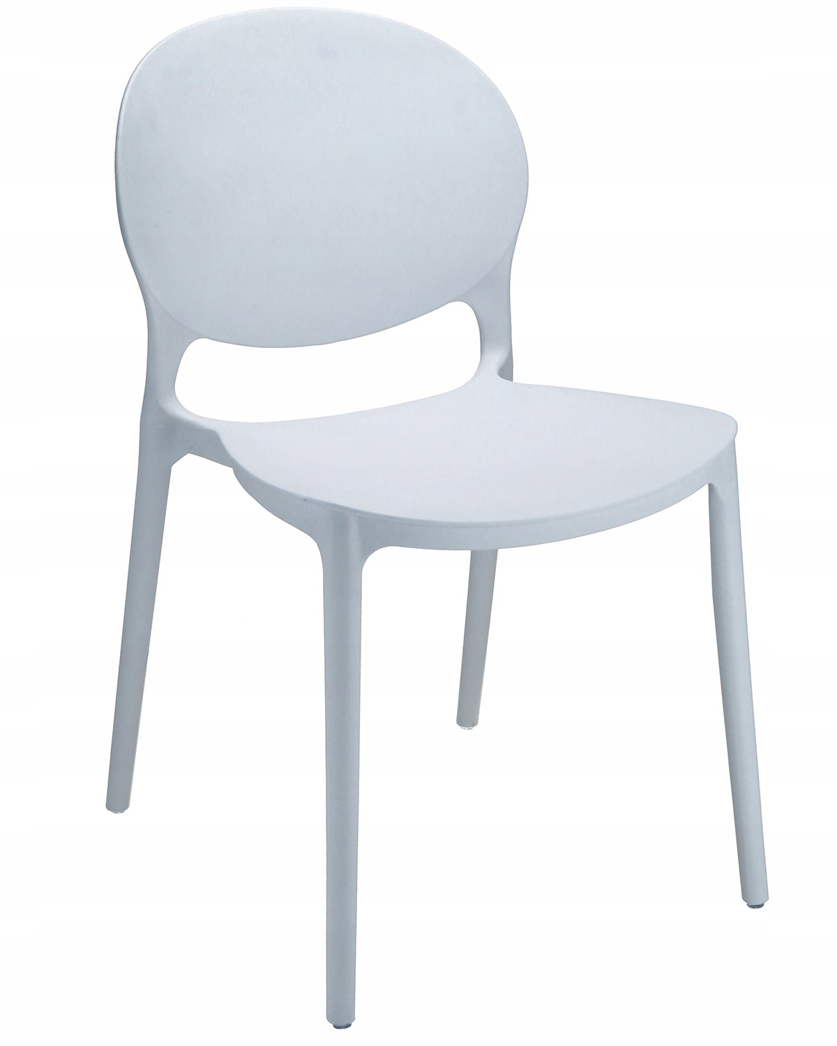 Owalne oparcie jak i całe krzesło wykonane jest z polipropylenu co zapewnia mu długotrwałą wytrzymałość, a proste nogi zapewniają idealną stabilność.