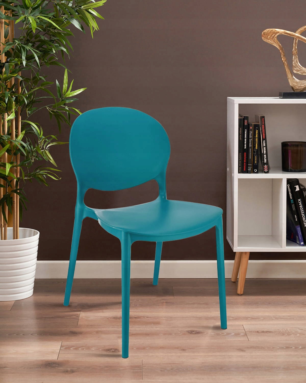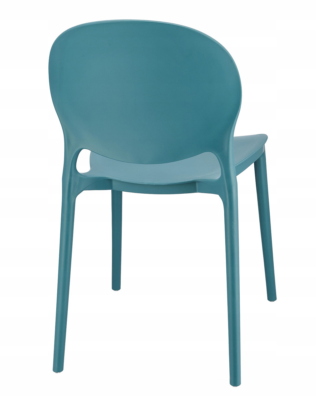 Owalne oparcie jak i całe krzesło wykonane jest z polipropylenu co zapewnia mu długotrwałą wytrzymałość, a proste nogi zapewniają idealną stabilność.
