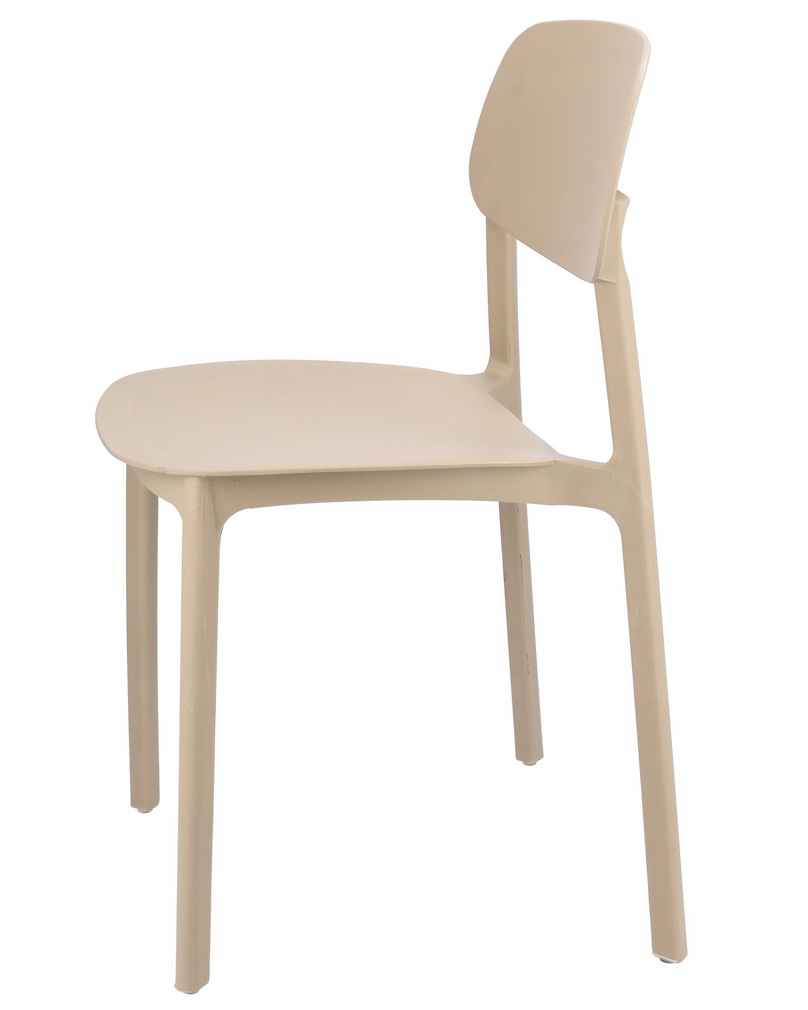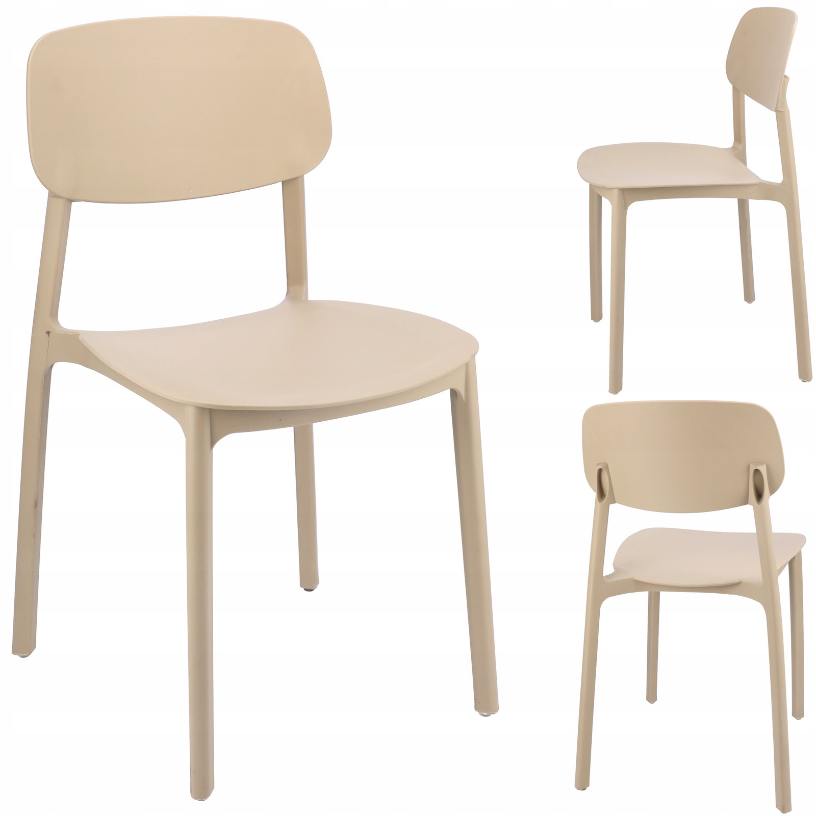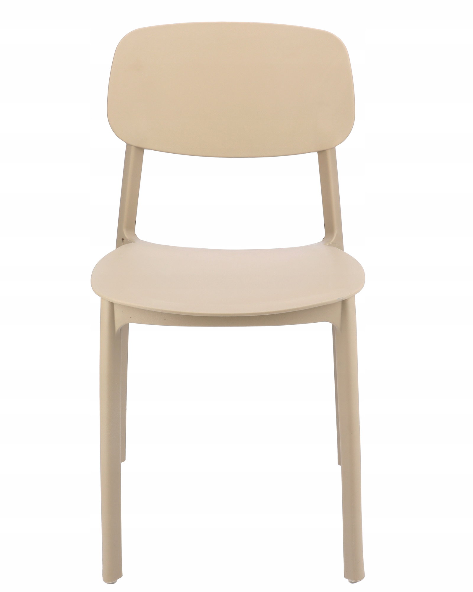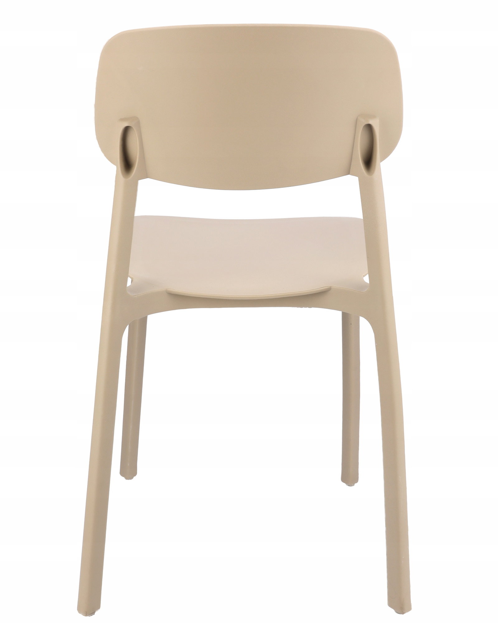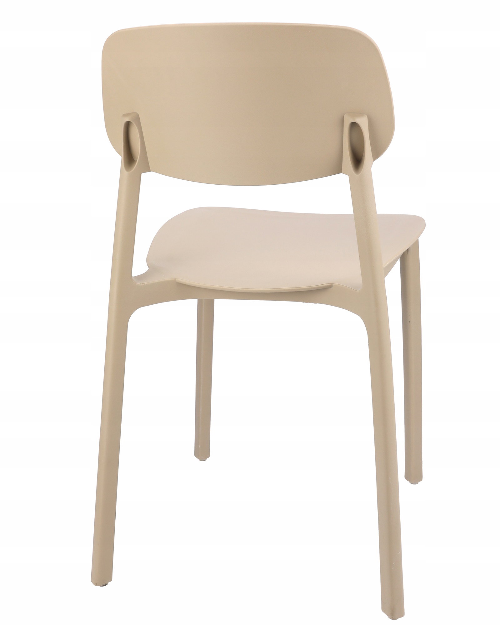 Owalne oparcie jak i całe krzesło wykonane jest z polipropylenu co zapewnia mu długotrwałą wytrzymałość, a proste nogi zapewniają idealną stabilność.