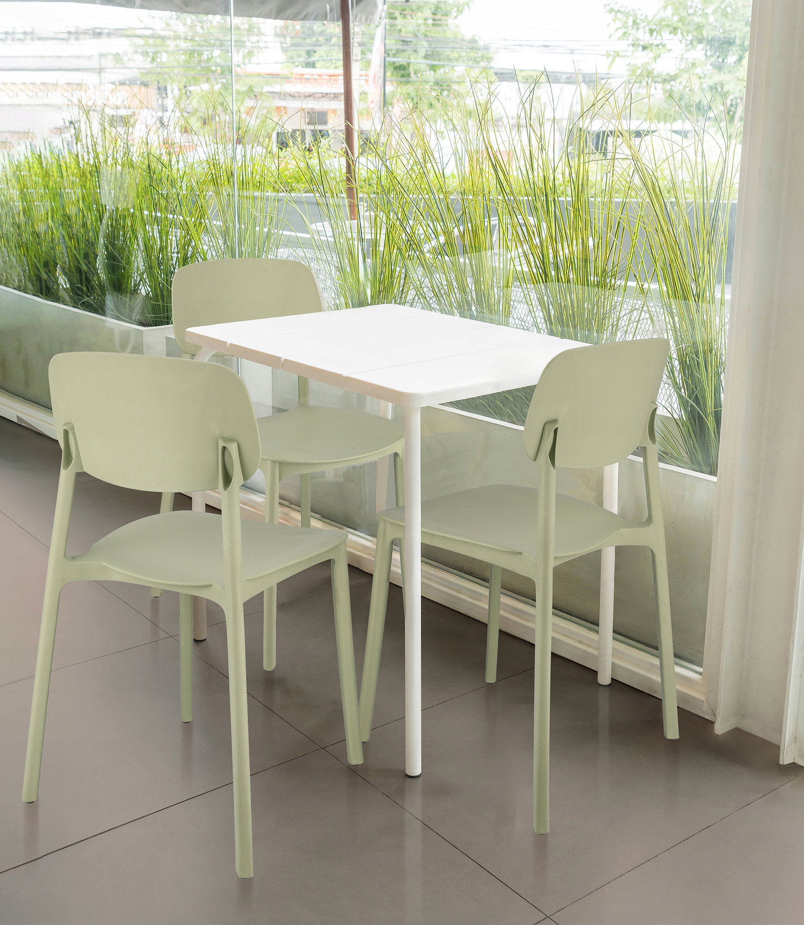Krzesło wykonane zostało w jednej bryle - nie wymaga skręcania oraz jest odporne na działanie warunków atmosferycznych, dlatego może być używane zarówno wewnątrz, jak i na zewnątrz pomieszczeń.