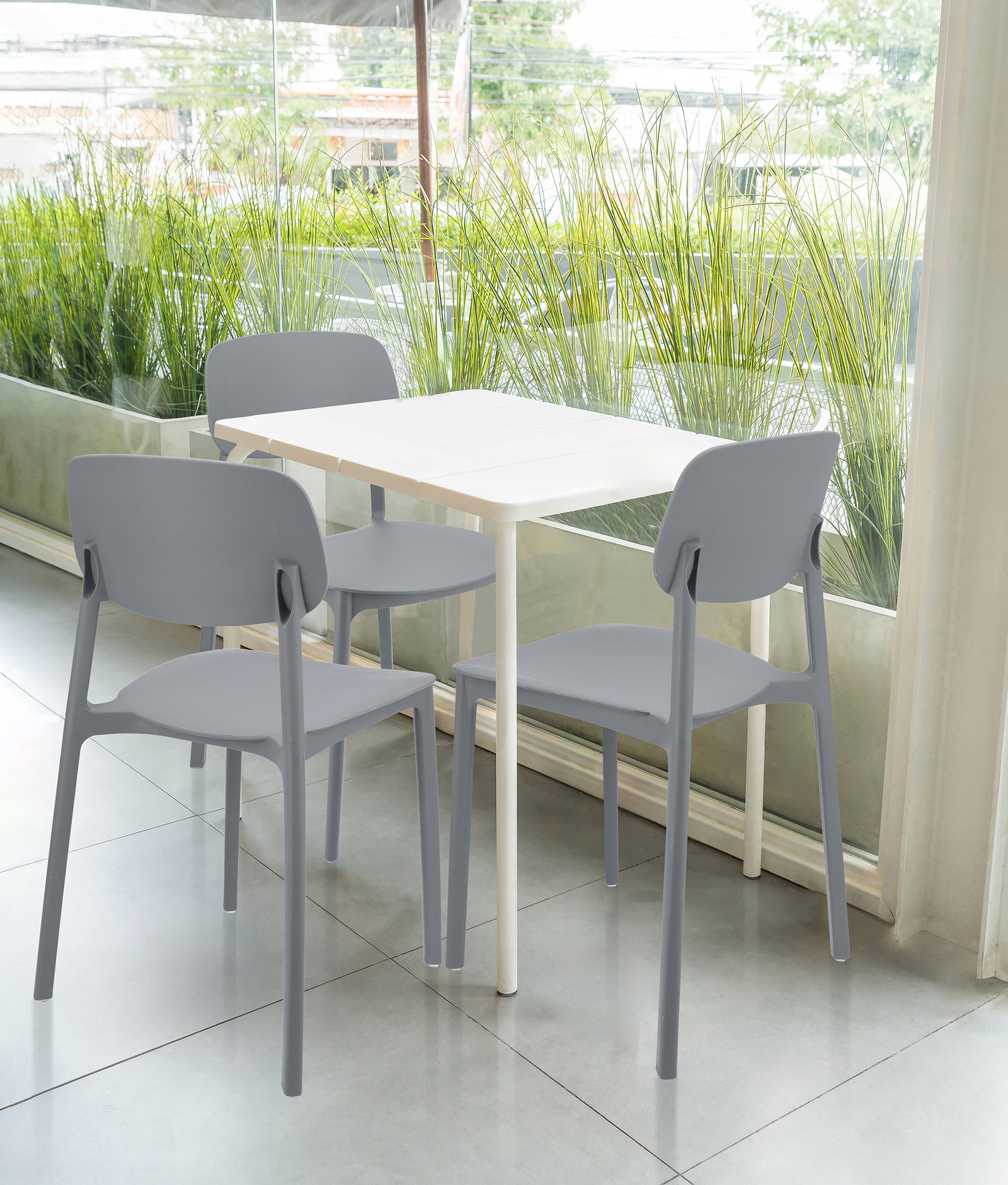 Krzesło wykonane zostało w jednej bryle - nie wymaga skręcania oraz jest odporne na działanie warunków atmosferycznych, dlatego może być używane zarówno wewnątrz, jak i na zewnątrz pomieszczeń.