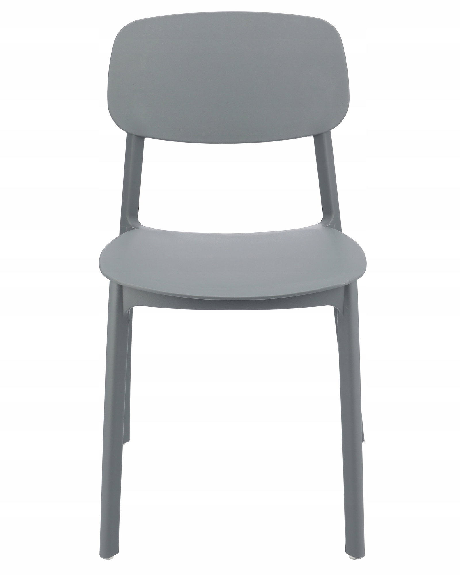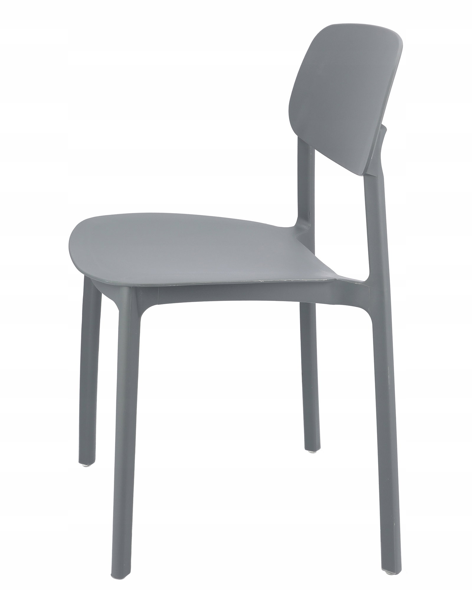 Owalne oparcie jak i całe krzesło wykonane jest z polipropylenu co zapewnia mu długotrwałą wytrzymałość, a proste nogi zapewniają idealną stabilność.