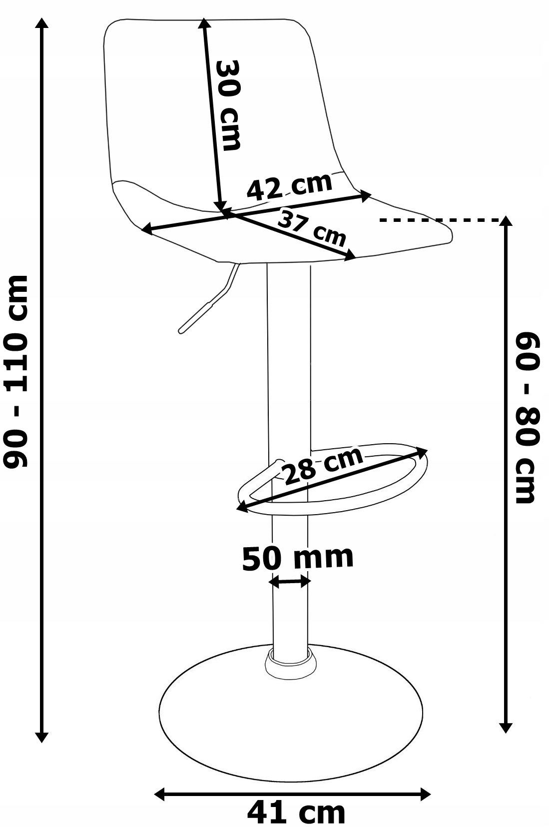 - Wymiary:Maksymalna Wysokość: 110 cmMinimalna Wysokość: 90 cmMaksymalna Wysokość Siedziska: 80 cmMinimalna Wysokość Siedziska: 60 cmSzerokość Siedziska: 42 cmGłębokość Siedziska: 37 cmŚrednica Podstawy: 41 cmSzerokość Podnóżka: 28 cm