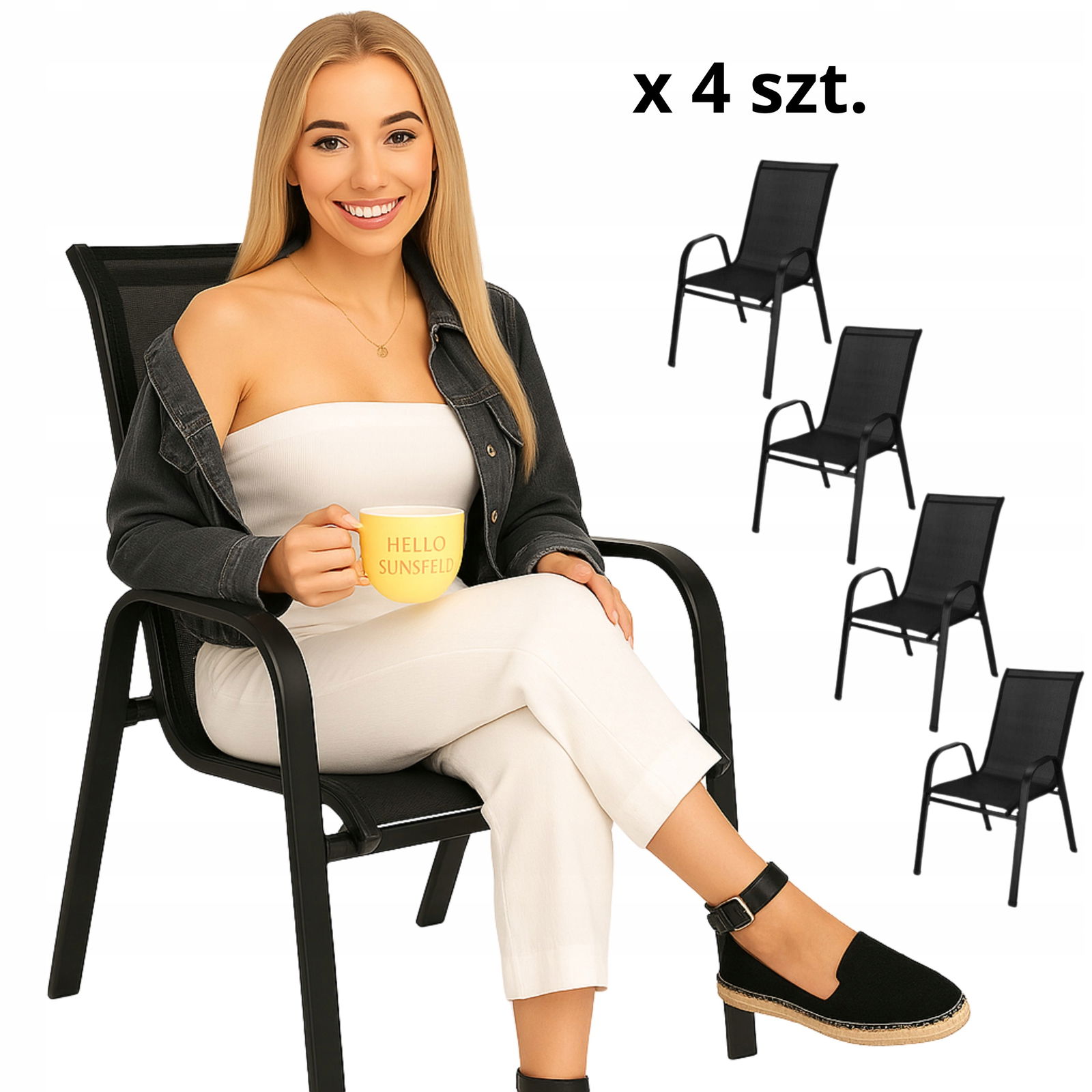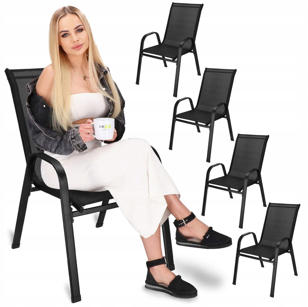 - KRZESŁO OGRODOWE 4 szt Czarne WYGODNE METAL