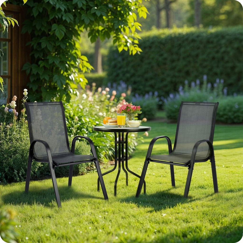 ☔ Odporność na warunki – nie bój się deszczu ani słońca – krzesła są odporne na wilgoć i UV.