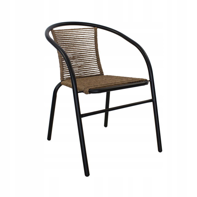 To krzesło balkonowe wyróżnia się prostą, a zarazem nowoczesną formą. Metalowy stelaż w kolorze czarnym zapewnia stabilność, a wykończenie z technorattanu nadaje mu naturalny charakter.
