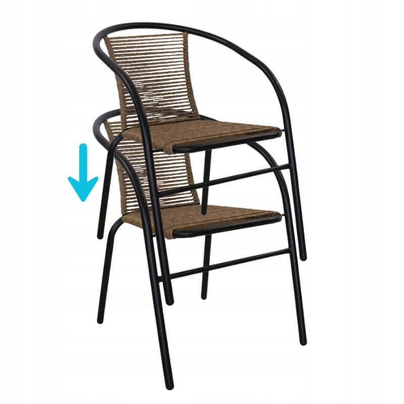Zastosowany technorattan to materiał odporny na działanie czynników atmosferycznych. Dzięki temu krzesło może być użytkowane na zewnątrz bez obaw o szybkie zużycie – nie blaknie, nie pęka i nie chłonie wilgoci.
