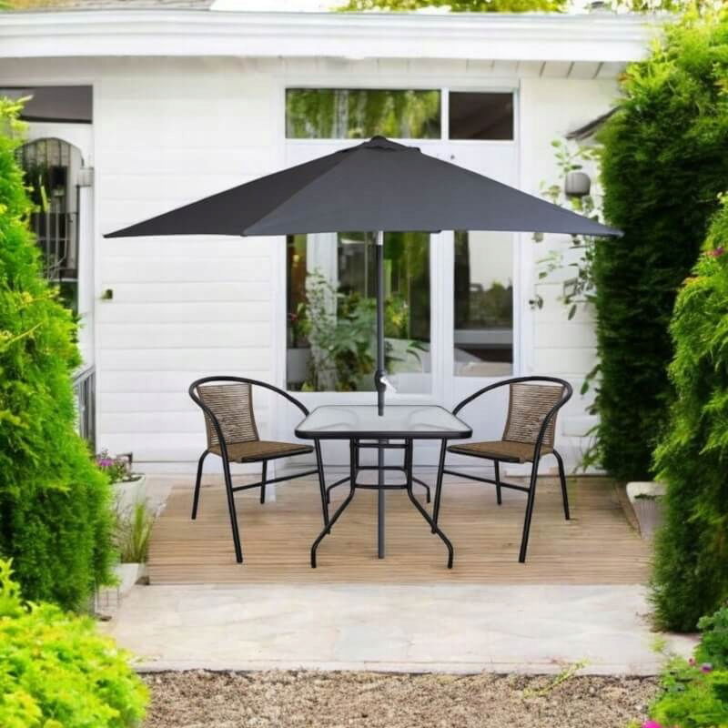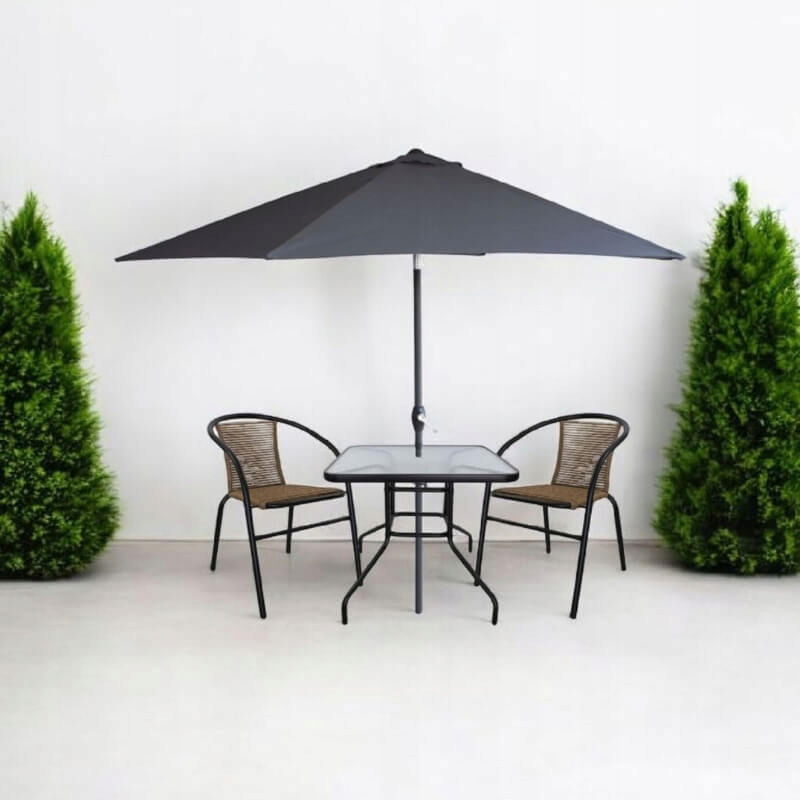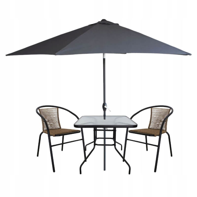 - Materiał siedziska i oparcia: technorattan (tworzywo sztuczne)
